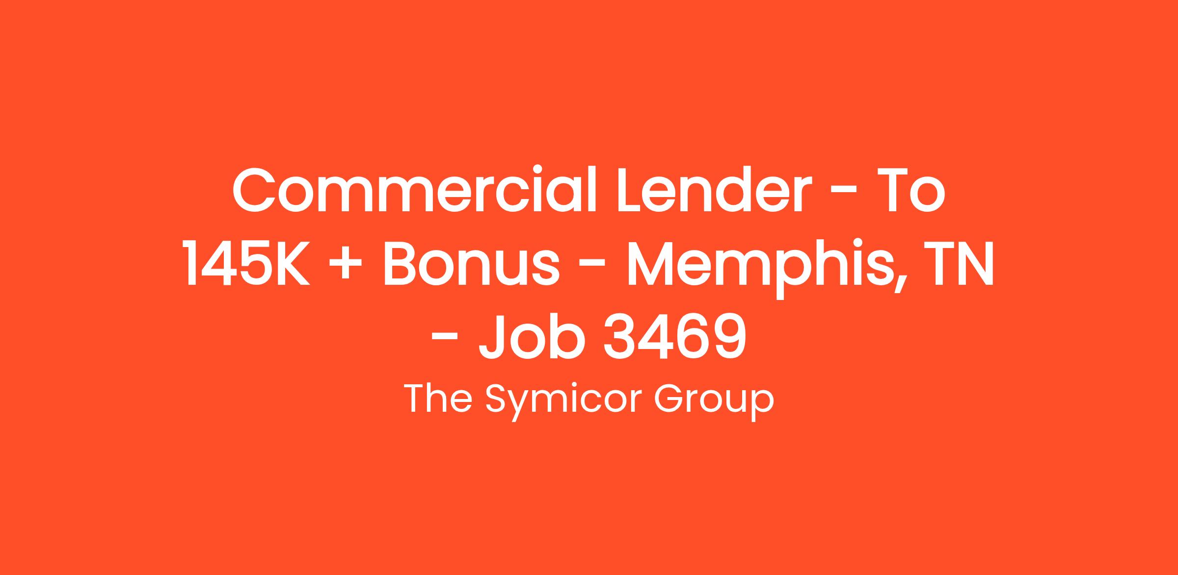 Commercial Lender – To $145K + Bonus – Memphis, TN – Job # 3469