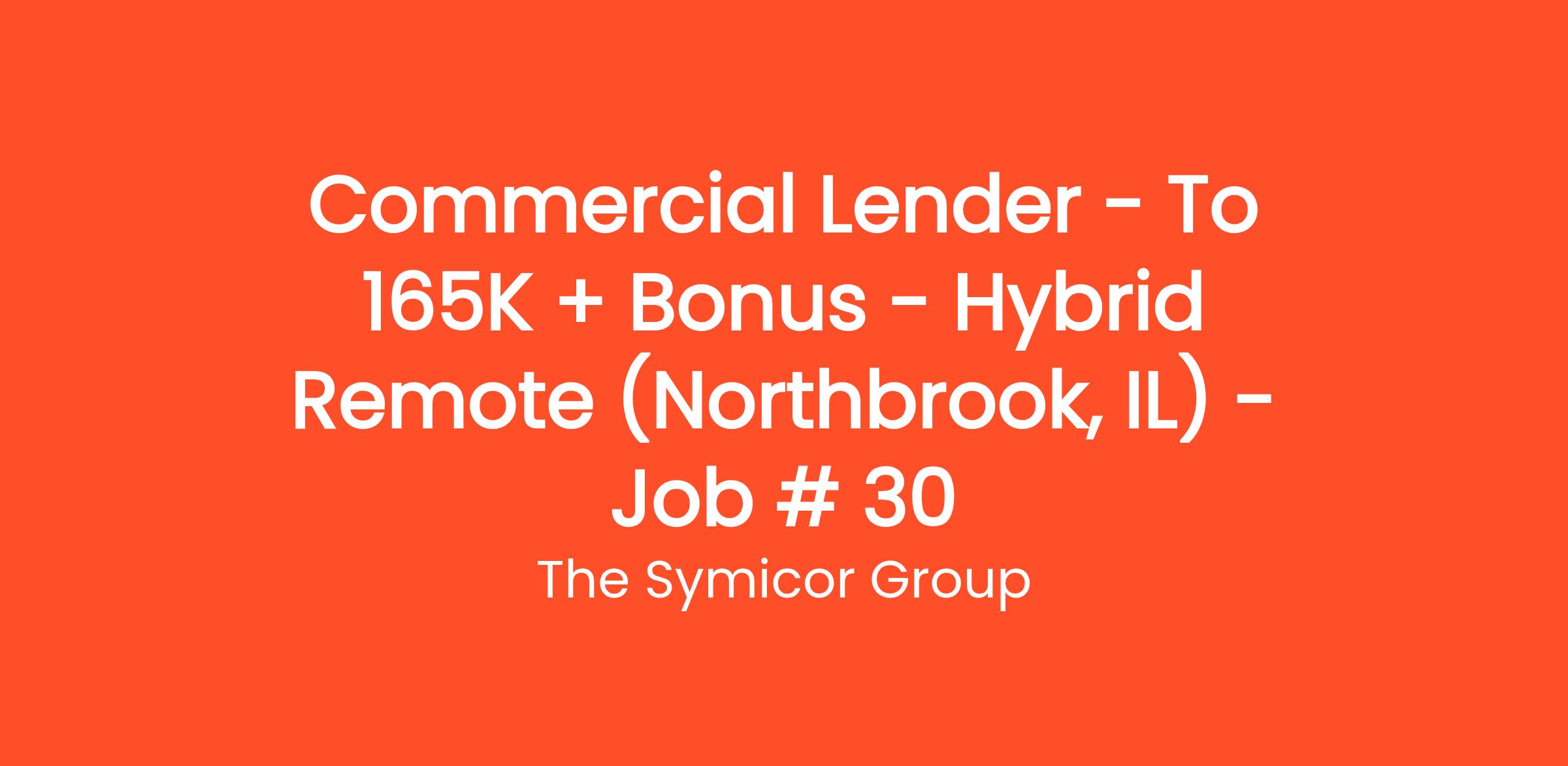 Our bank client is seeking to fill a Hybrid Remote Commercial Lender role to be based in the Northbrook, IL market. The successful candidate will make and service a variety of commercial loans. The candidate will also assist senior officers in handling larger and more complicated loans and provide other customer services as may be required.