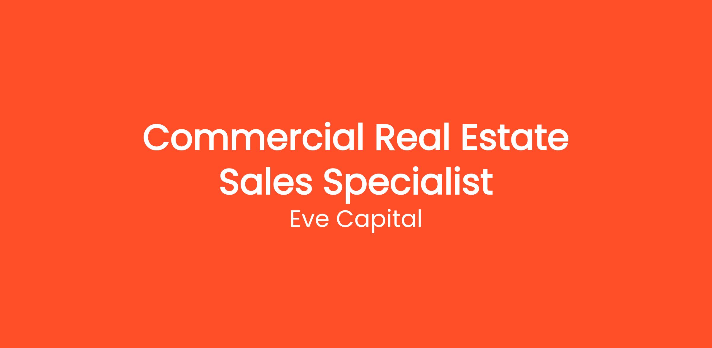 If you're ready to take control of your career and join a firm that's redefining the commercial brokerage industry, apply today. Start building a successful future in commercial real estate with Eve Capital's proven strategies and dedicated team! A current real estate license is required.