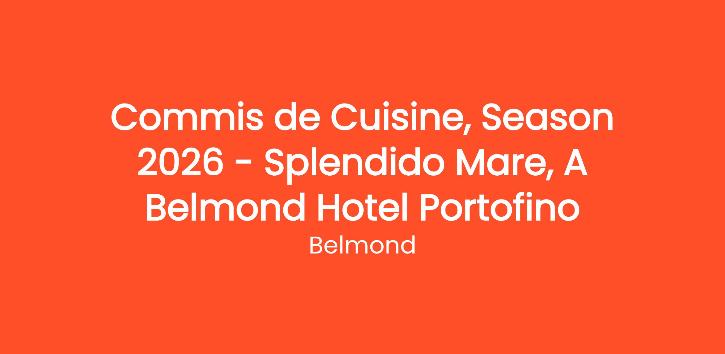 - Start date: April/May 2026 to End date: November 2026, with the aim of a continuous collaboration over subsequent seasons at Splendido Mare and a career path;