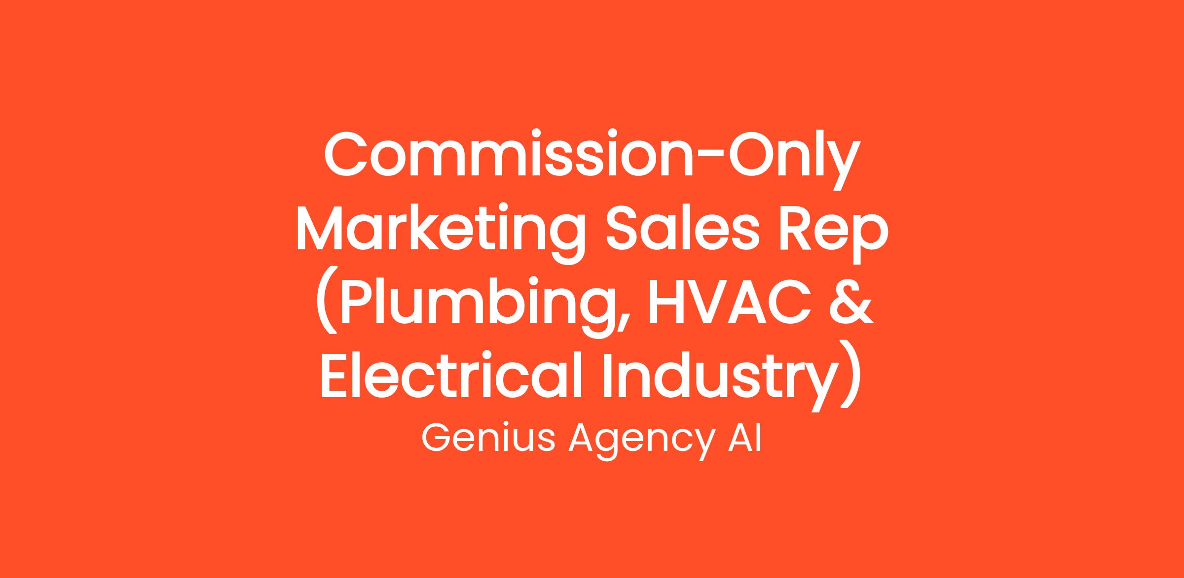 Genius Agency AI is in search of a motivated and results-driven Commission-Only Marketing Sales Representative specializing in the Plumbing, HVAC, and Electrical industries. In this role, you will be responsible for generating new business opportunities and promoting our marketing services tailored specifically for these sectors. This position operates on a commission-only basis, providing you with unlimited earning potential based on your sales performance.