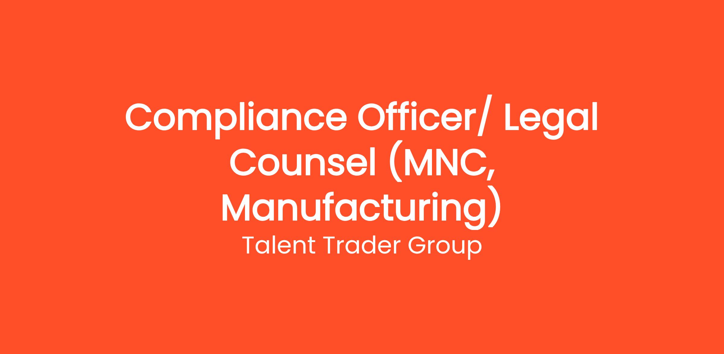 Compliance Officer/ Legal Counsel (MNC, Manufacturing)