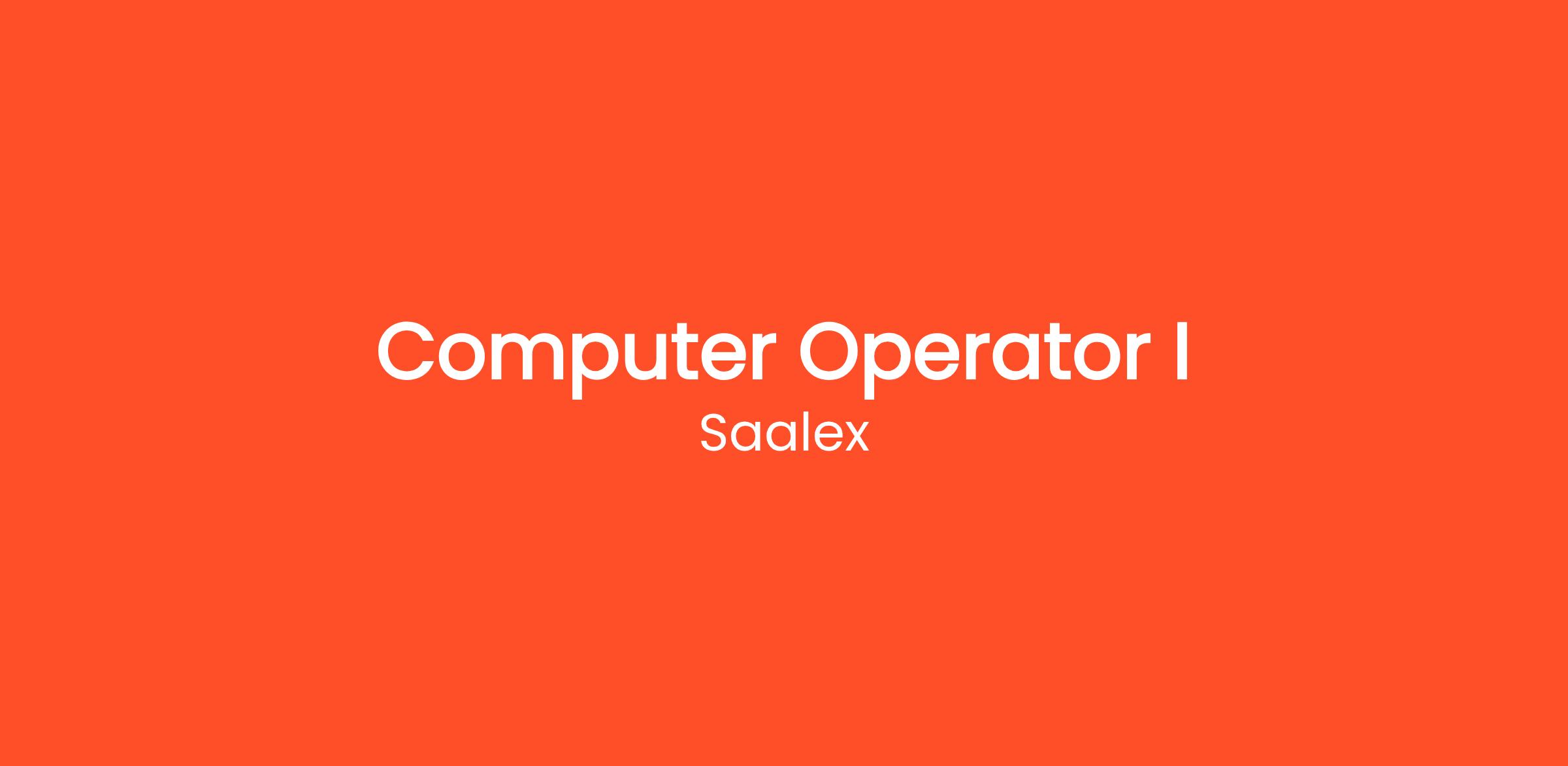 Saalex is seeking an Computer Operator I in Point Mugu, CA. Saalex is an Engineering and Information Technology Services company with a focus on Test Range Operations and Management, Engineering and Logistics Services, Data Analytics and Business Intelligence Services and Information Technology Services.