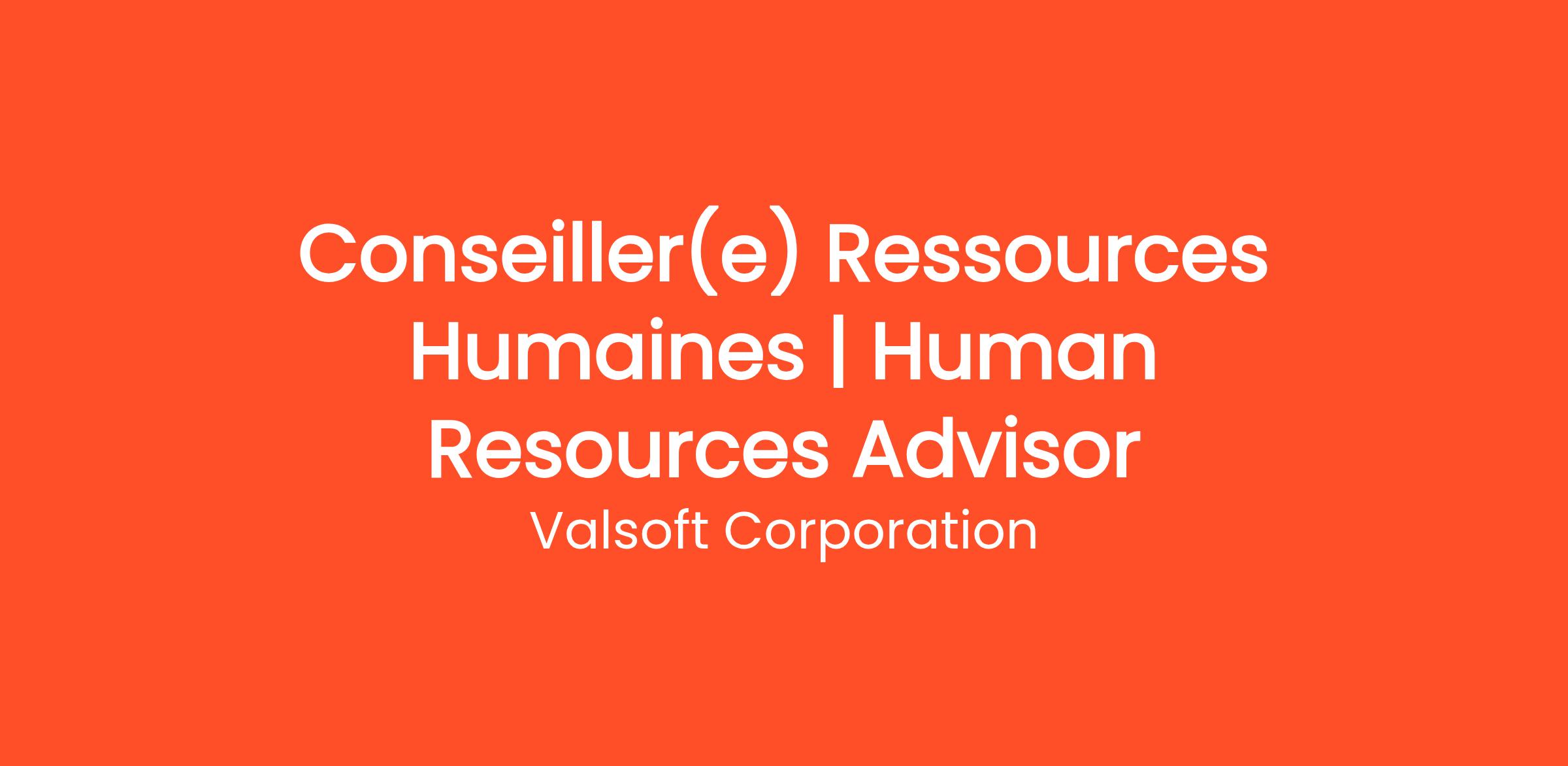 Valsoft est à la recherche d’un(e) Conseiller(e) en Ressources Humaines pour se joindre à notre équipe au Canada.