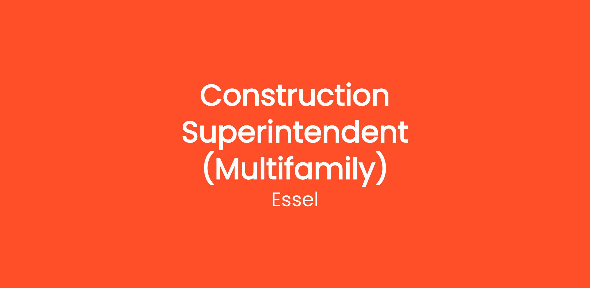 Essel has partnered with a leading multi-family residential development company and its affiliated general construction company seeking a Jobsite Superintendent to manage multi-family residential construction projects.