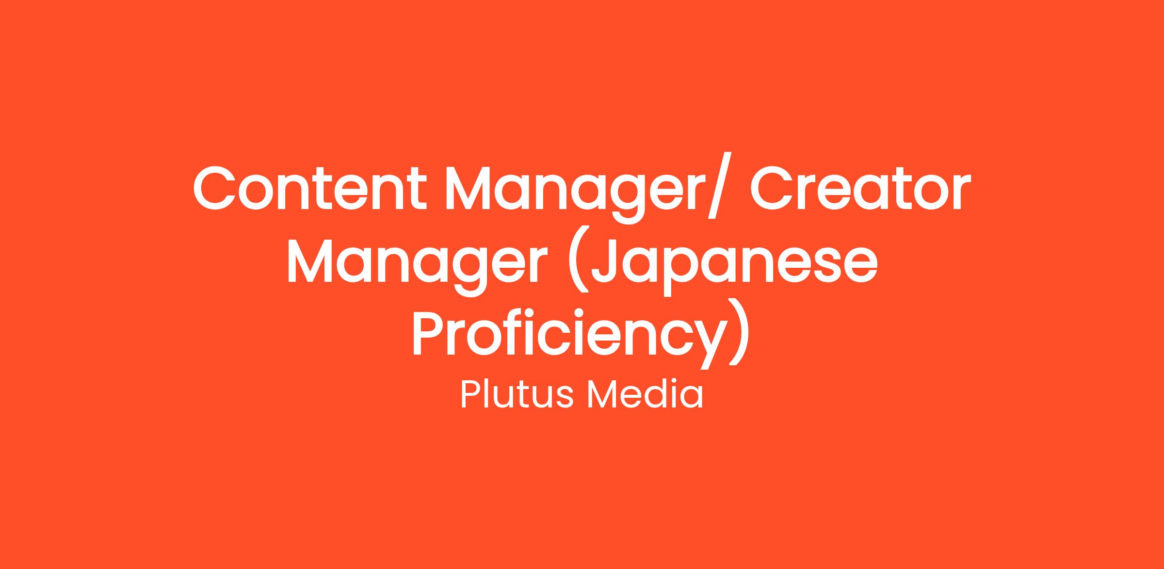 Plutus Media is looking for a dynamic Content Manager/ Creator Manager to oversee our Japanese content creators and ensure the production of captivating, culturally relevant content. You will collaborate with creators to develop strategies, provide guidance, and ensure that all content aligns with our brand's vision and resonates with the target audience in Japan.