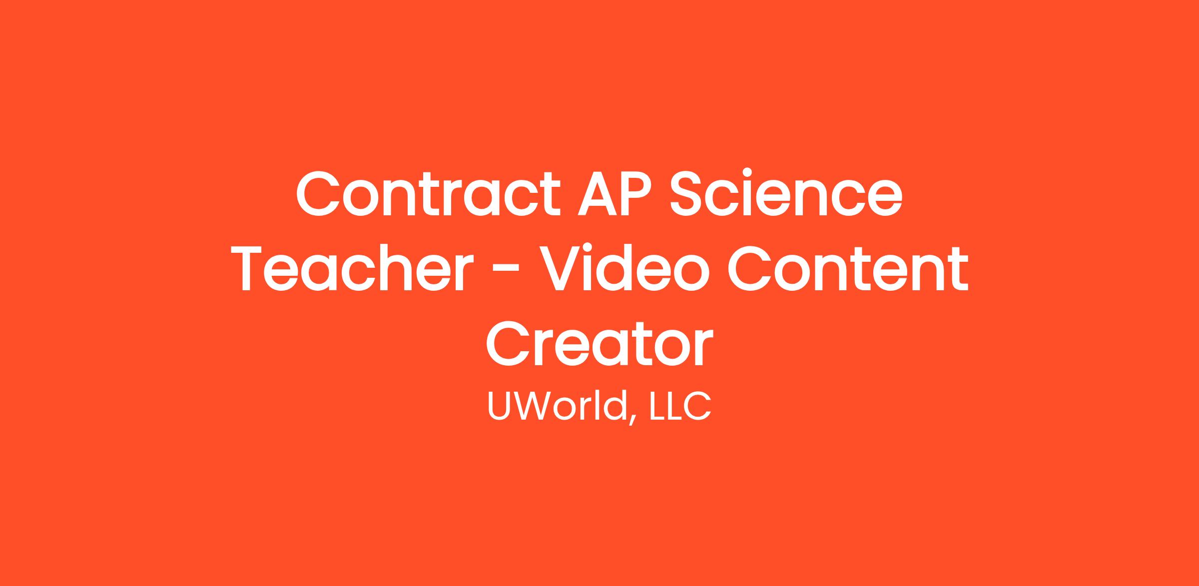 UWorld is looking for dynamic, high-energy AP Science Teachers (Physics, Chemistry, or Psychology) to become the face of our next generation of AP instructional and lab based social media videos. This contract role involves collaborating with our content development team to write engaging, accurate scripts, and to film filming those videos in our state-of-the-art recording studio.