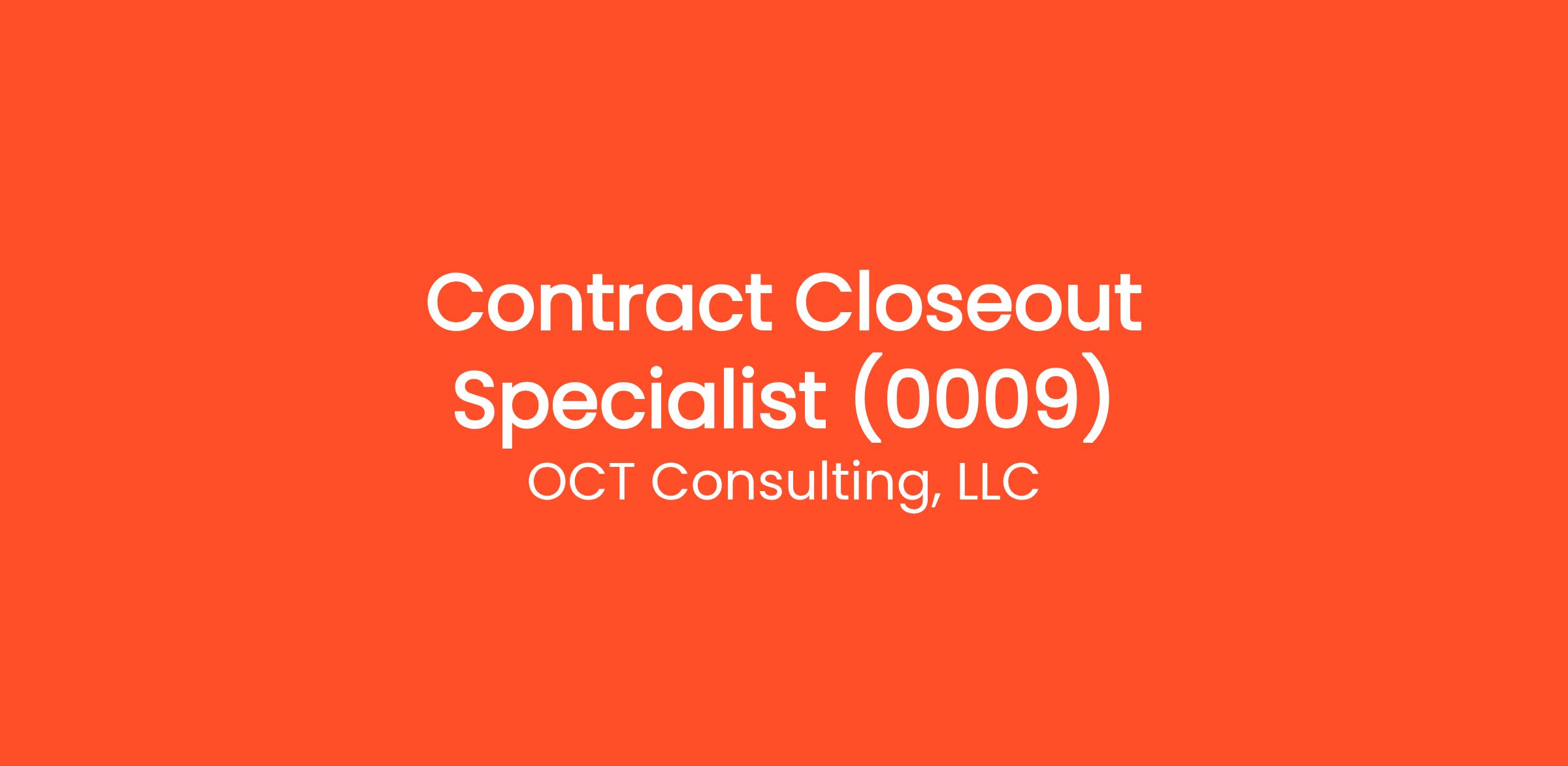 OCT is seeking experienced Acquisition Professionals (Closeout Specialists) with at least 5 years of Contract Specialist or Contracting and Procurement experience, with a focus on closeout activities. Experience within the 1102 Contracting and Procurement Series is preferred, and qualified backgrounds may include federal service or institutional support contractor roles supporting federal agencies.