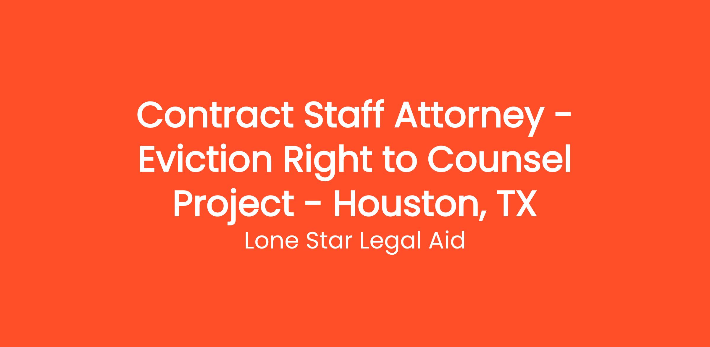 Lone Star Legal Aid (LSLA) seeks one Contract Staff Attorney - Eviction Right to Counsel Project (JP# HOU 007-2024) for its Houston Branch Office.