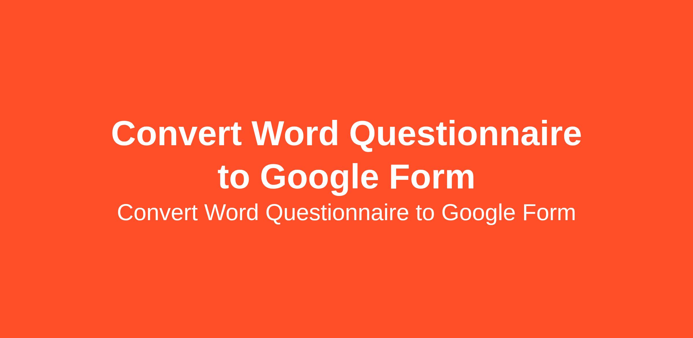 Project Title: Simple Data Entry: Create Google Form from Document Project Description:I have a 9-section questionnaire in a Word document that needs to be converted into a Google Form. The Task:Type/Copy text from the attached document into Google Forms... (Budget: $10 - $30 USD, Jobs: Data Entry, Google Sheets, Typing)