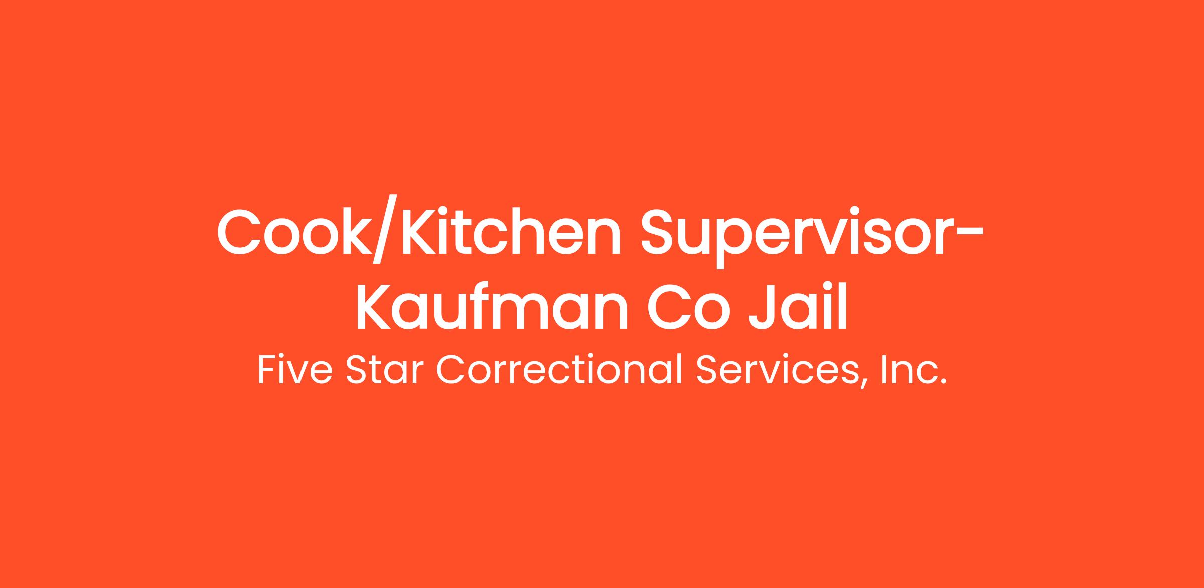 Large private correctional food service provider in Texas is seeking experienced Kitchen Supervisor/Cook at the Kaufman County Jail in Kaufman, TX.