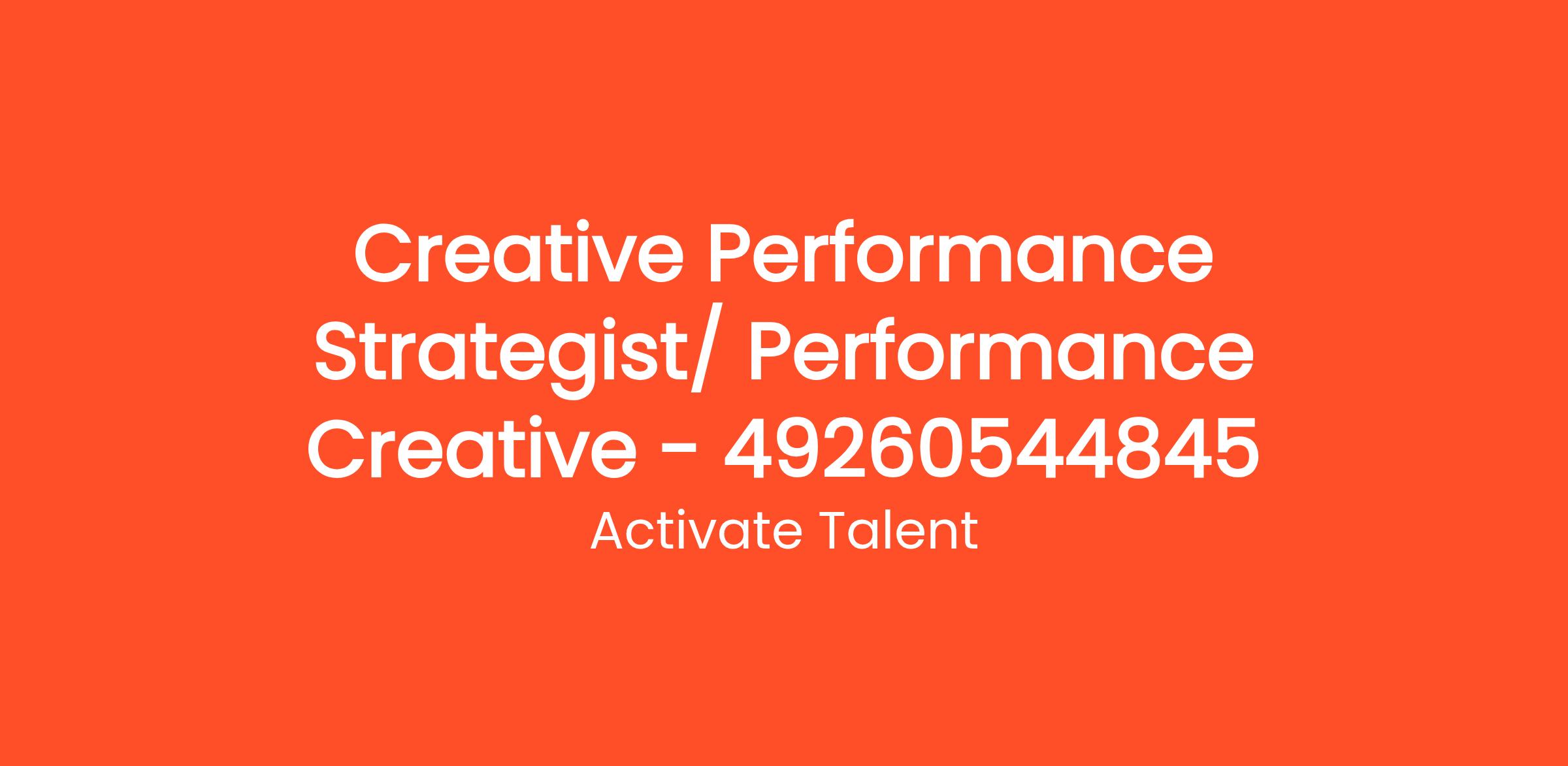 Job Title: Creative Performance Strategist/ Performance Creative