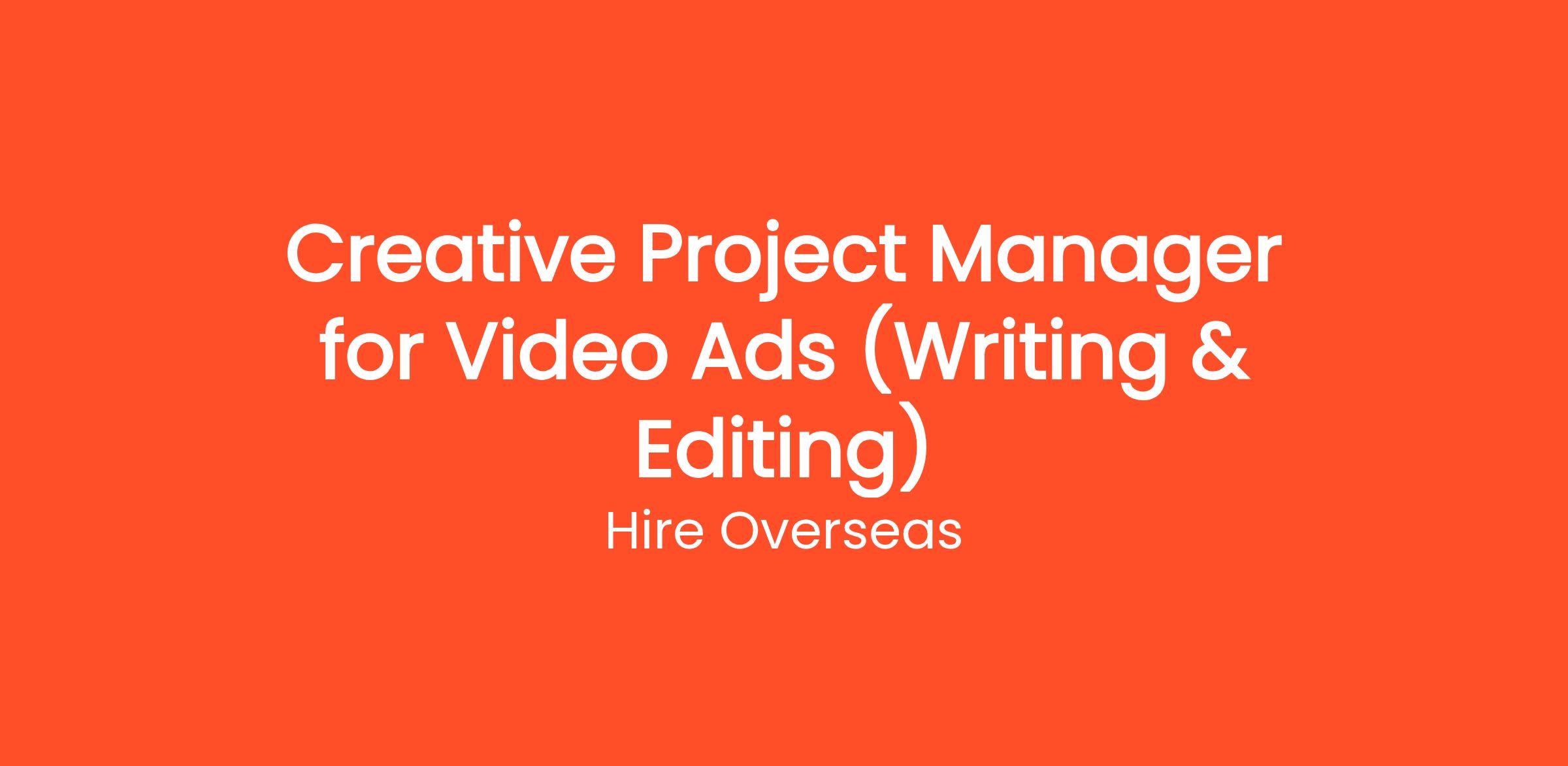 We’re looking for a Creative Project Manager for Video Ads (Writing & Editing Required) who can turn creative concepts into sharp, actionable video briefs while managing the full production workflow from idea to final delivery. This role sits at the intersection of storytelling, project management, and post-production oversight.