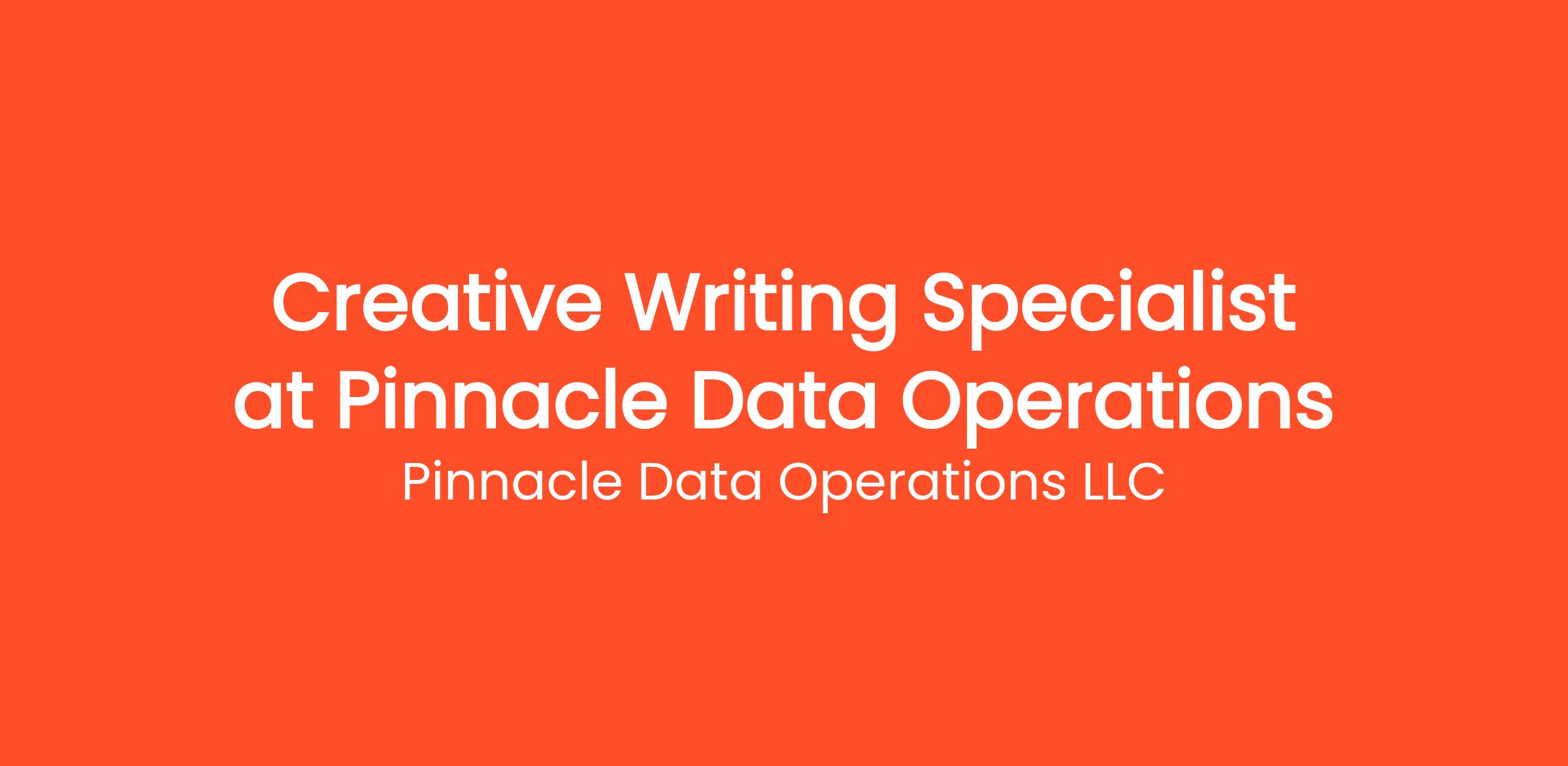Are you highly organized and looking for the perfect entry-level opportunity? Pinnacle Data Operations LLC is currently seeking a Creative Writing Specialist (Entry Level - Remote) to join our rapidly growing remote team. If you've been searching for remote jobs no degree or overnight remote jobs, this is the exact role you've been looking for. No degree required and no prior experience is necessary—we provide comprehensive training to all new hires! You will be responsible for critical daily operations, managing secure platforms, and contributing to our vibrant digital culture.