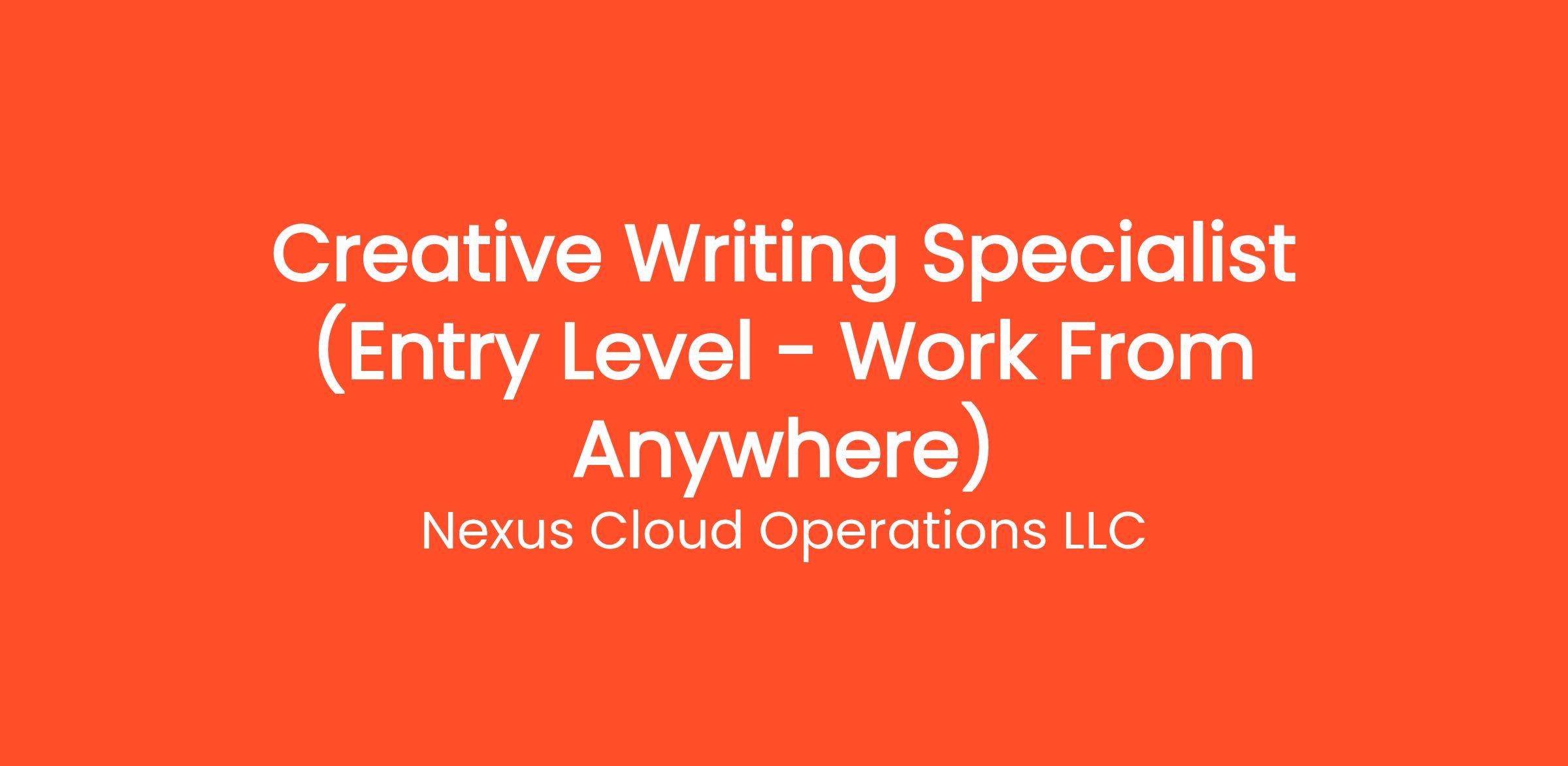 Are you highly organized and looking for the perfect entry-level opportunity? Nexus Cloud Operations LLC is currently seeking a Creative Writing Specialist (Entry Level - Work From Anywhere) to join our rapidly growing remote team. If you've been searching for remote jobs no degree or overnight remote jobs, this is the exact role you've been looking for. No degree required and no prior experience is necessary—we provide comprehensive training to all new hires! You will be responsible for critical daily operations, managing secure platforms, and contributing to our vibrant digital culture.