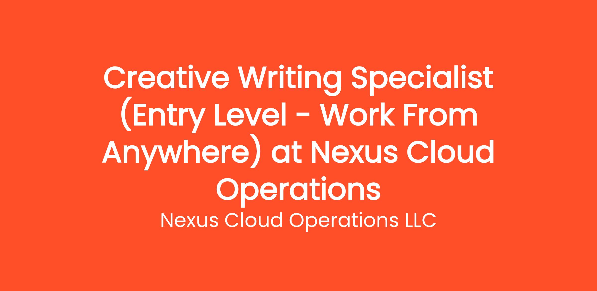 Are you highly organized and looking for the perfect entry-level opportunity? Nexus Cloud Operations LLC is currently seeking a Creative Writing Specialist (Entry Level - Work From Anywhere) to join our rapidly growing remote team. If you've been searching for remote jobs no degree or overnight remote jobs, this is the exact role you've been looking for. No degree required and no prior experience is necessary—we provide comprehensive training to all new hires! You will be responsible for critical daily operations, managing secure platforms, and contributing to our vibrant digital culture.