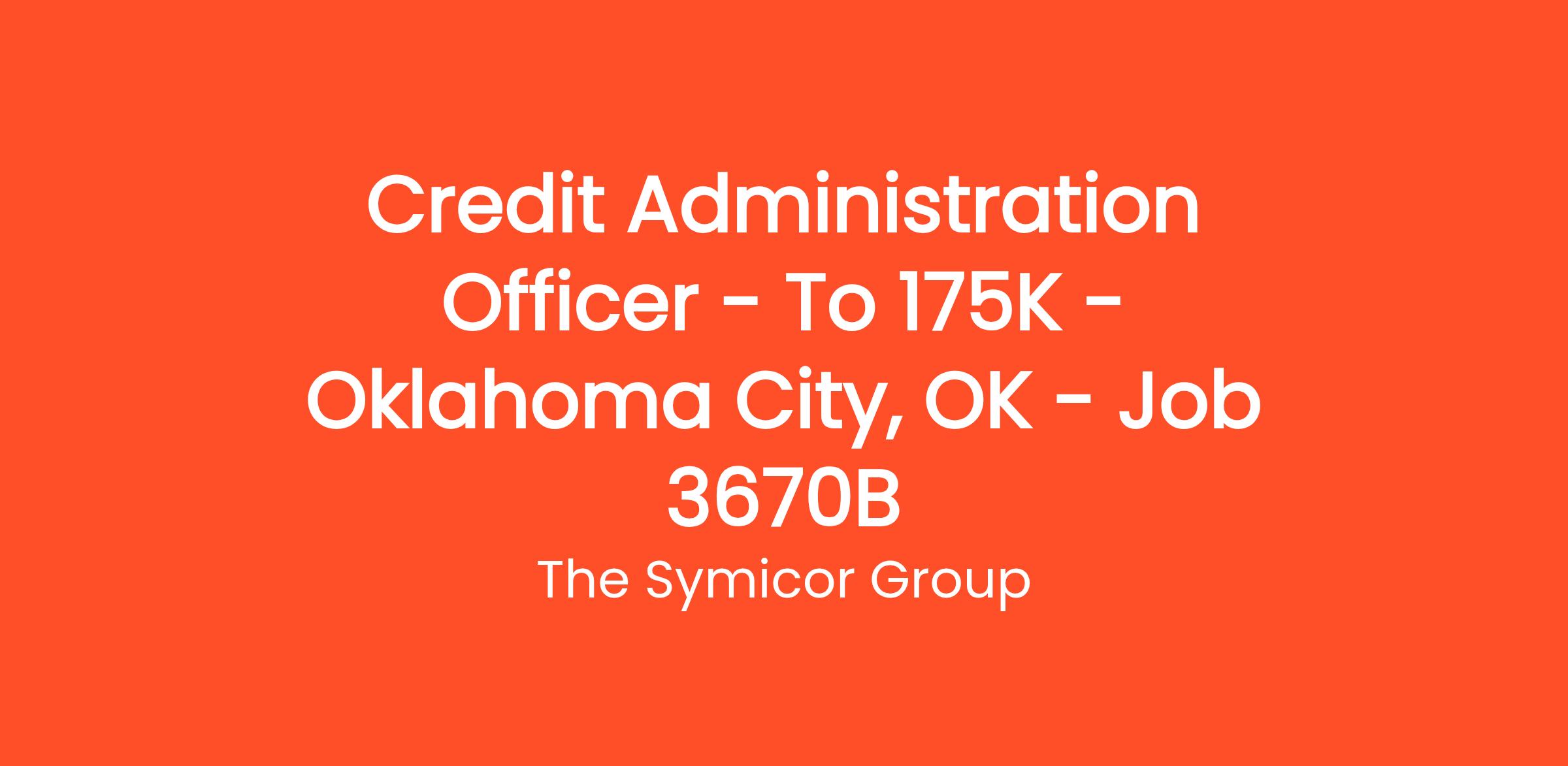 Credit Administration Officer - To 175K - Oklahoma City, OK - Job 3670B