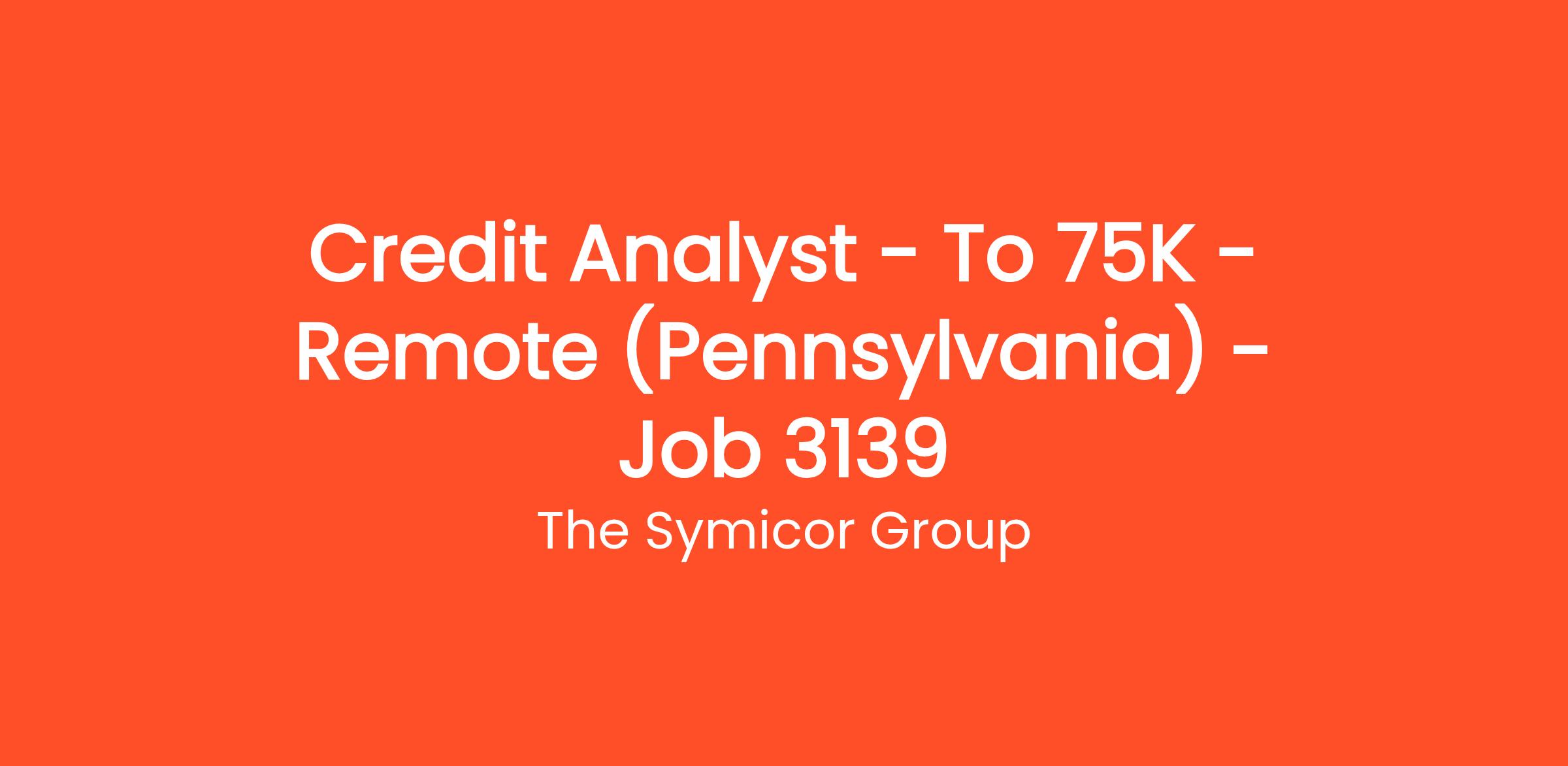 Credit Analyst – To $75K – Remote (Pennsylvania) – Job # 3139