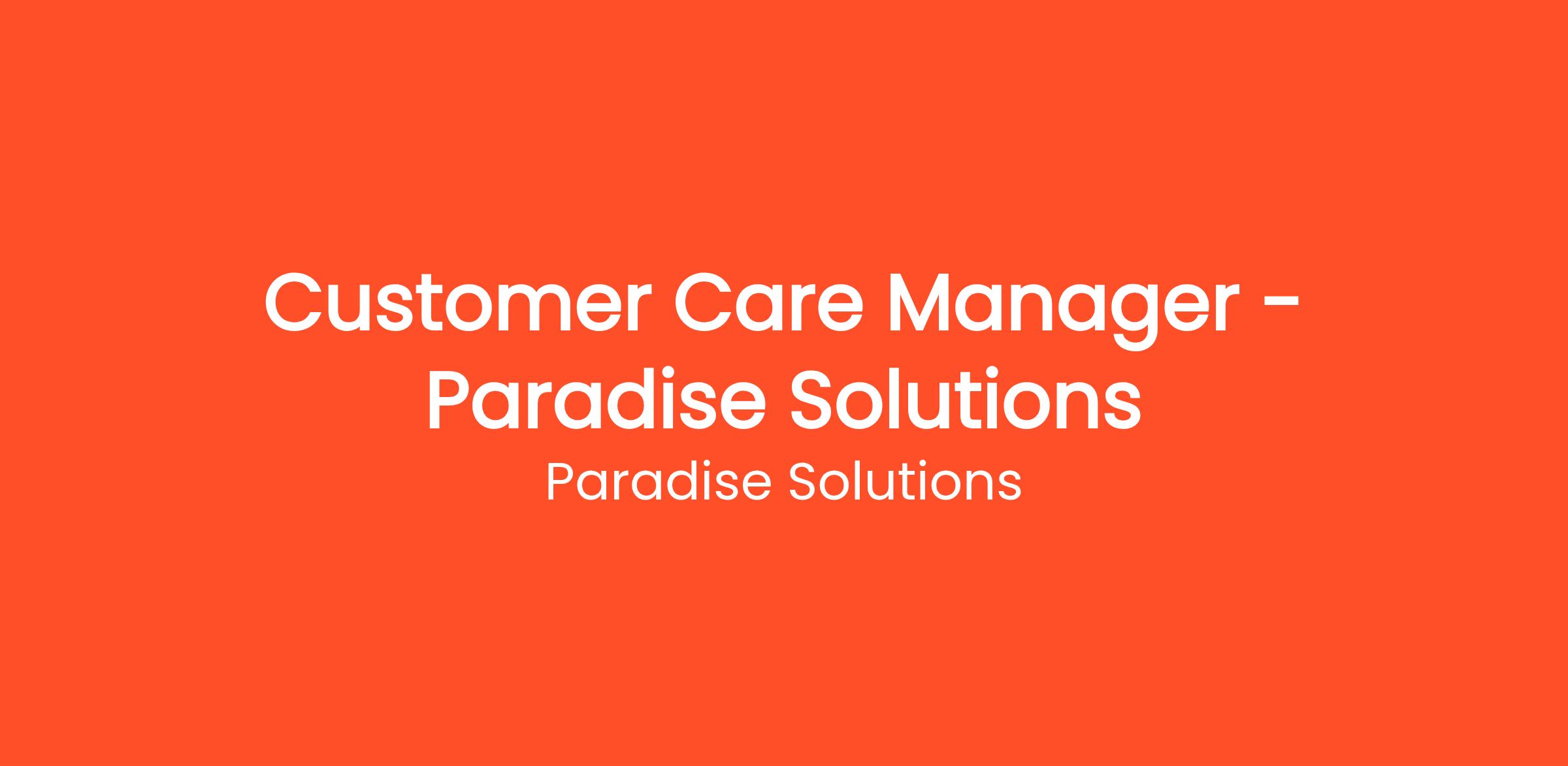 Paradise Solutions is Now Hiring for Customer Care Manager!