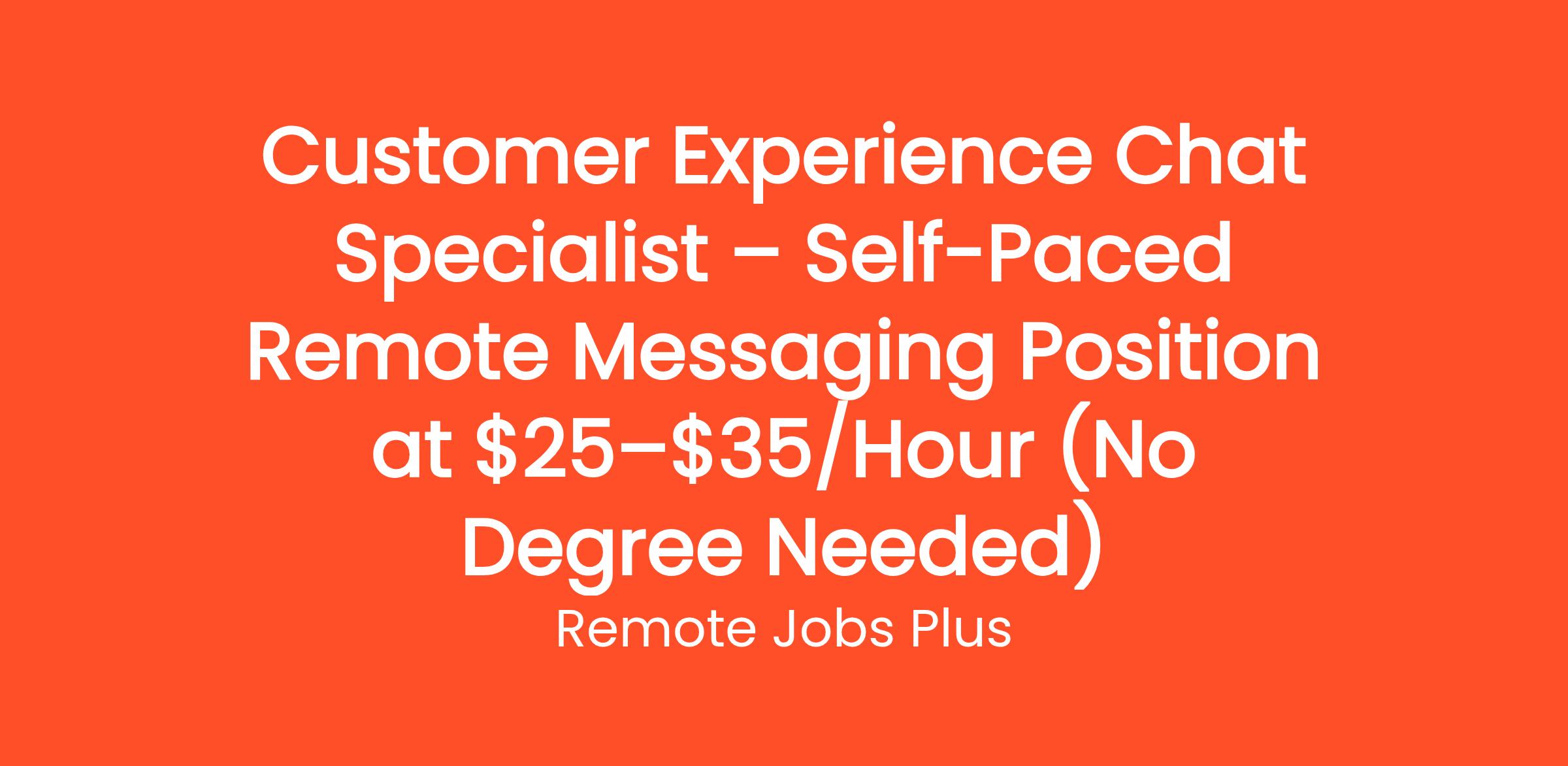 Customer Experience Chat Specialist – Self-Paced Remote Messaging Position at $25–$35/Hour (No Degree Needed)