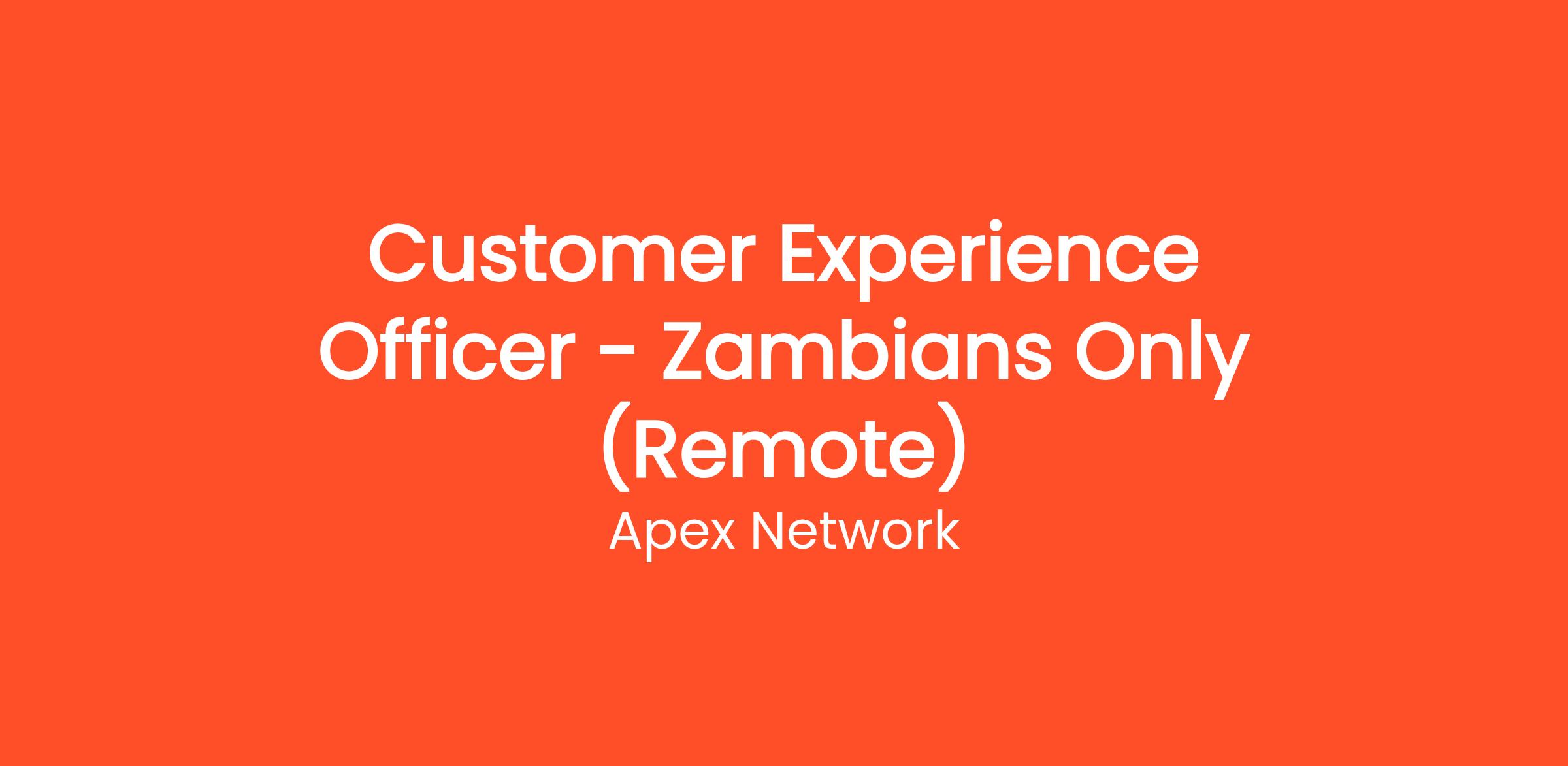 Apex Network is seeking a dedicated Customer Experience Officer to join our remote team, specifically targeting Zambians. In this role, you will serve as a vital point of contact for our customers, ensuring that they receive outstanding service and support. Your primary responsibilities will include managing customer inquiries, providing comprehensive assistance, and continuously seeking ways to improve the overall customer experience.
