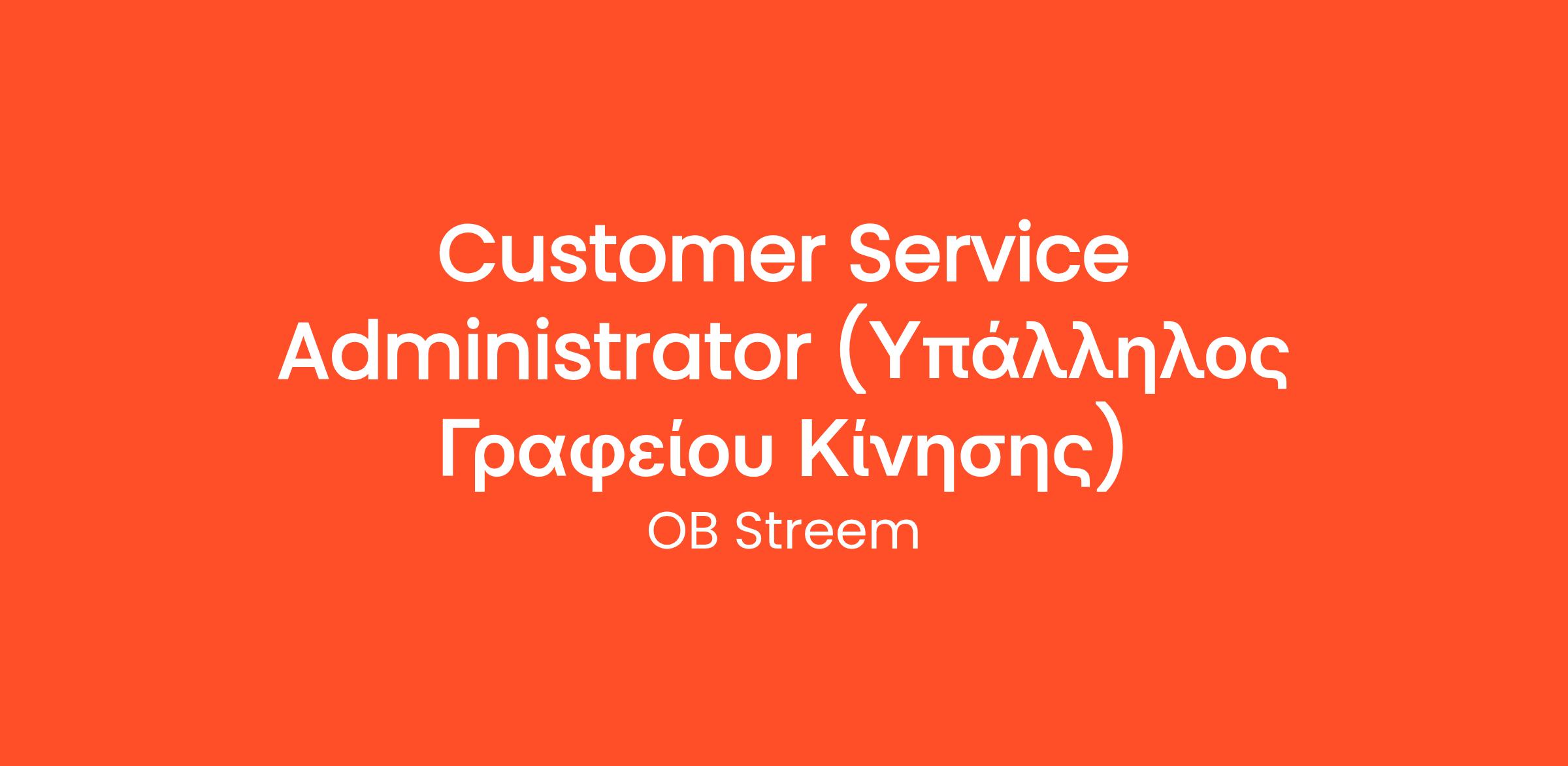 Στα πλαίσια της συνεχούς επέκτασης των δραστηριοτήτων της, η ΟΒ Streem αναζητά Υπάλληλο Γραφείου Εξυπηρέτησης Πελατών (Customer Service Administrator) για τις εγκαταστάσεις της στην περιοχή της Ελευσίνας και του Ασπροπύργου.