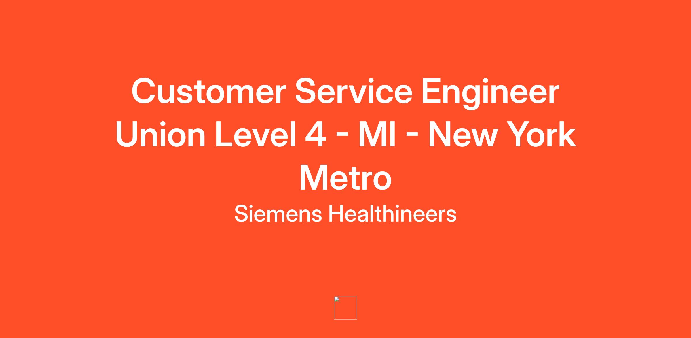 You will be servicing MI Equipment in the New York Metro/Staten Island area. Customer Service Engineer Level based on prior experience.