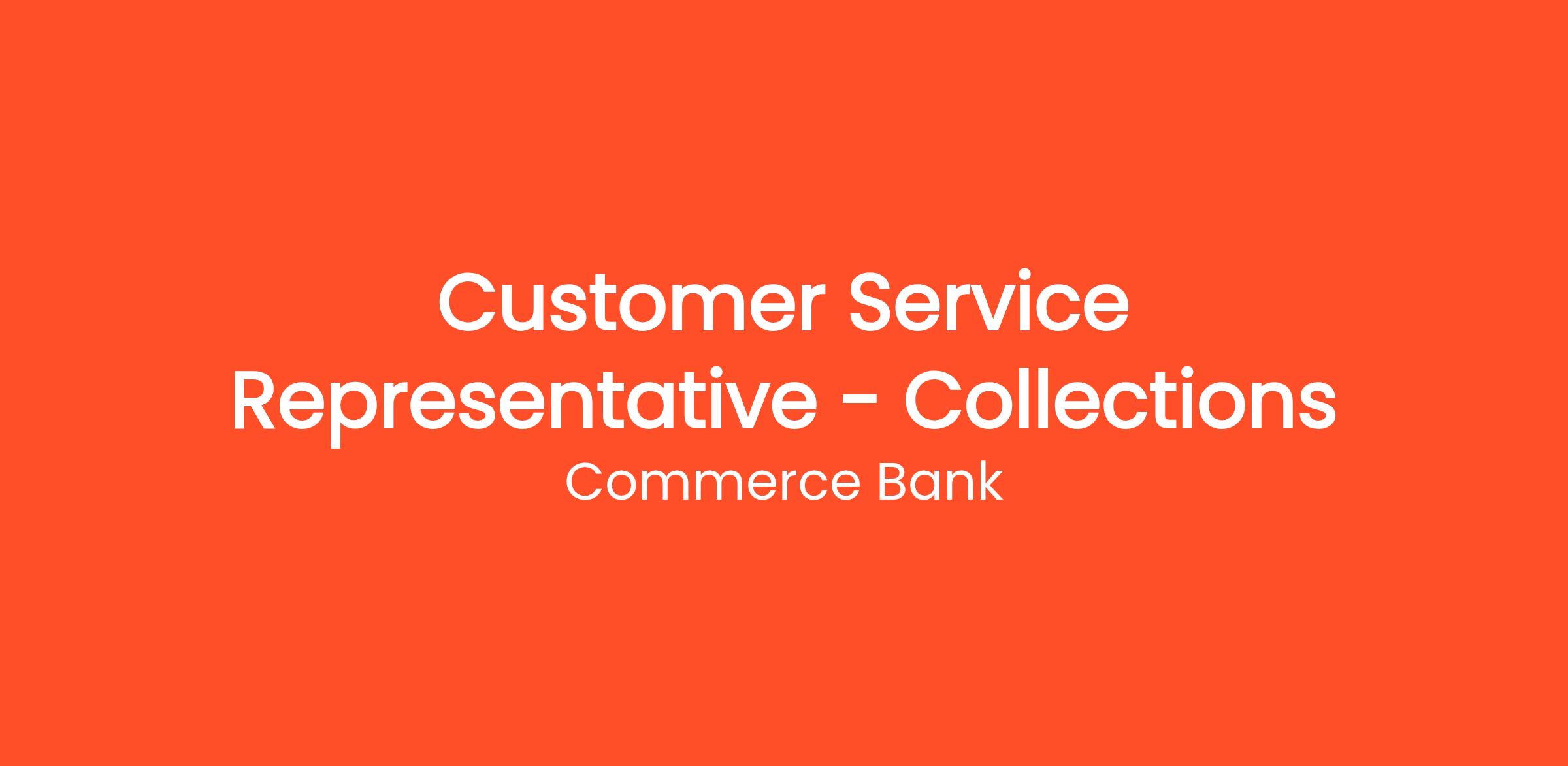 ***For individuals applying, assigned and/or hired to work in areas with pay transparency requirements, Commerce is required by law to include a reasonable estimate of the compensation range for some roles. This compensation range is for the Collector I & II job and contemplates a wide range of factors that are considered in determining most appropriate job level and making compensation decisions, including but not limited to location, skill sets, education, relevant experience and training, licensure and certifications, and other business and organizational needs. The disclosed range estimate has not been adjusted for any applicable differentials (geographic, bilingual, or shift) that could be associated with the position or where it is filled. At Commerce, it is not typical for an individual to be hired at or near the top of the range for their role, and compensation decisions are dependent on the facts and circumstances of each situation. A reasonable estimate of the current base pay is $18.00 to $20.50 per hour.