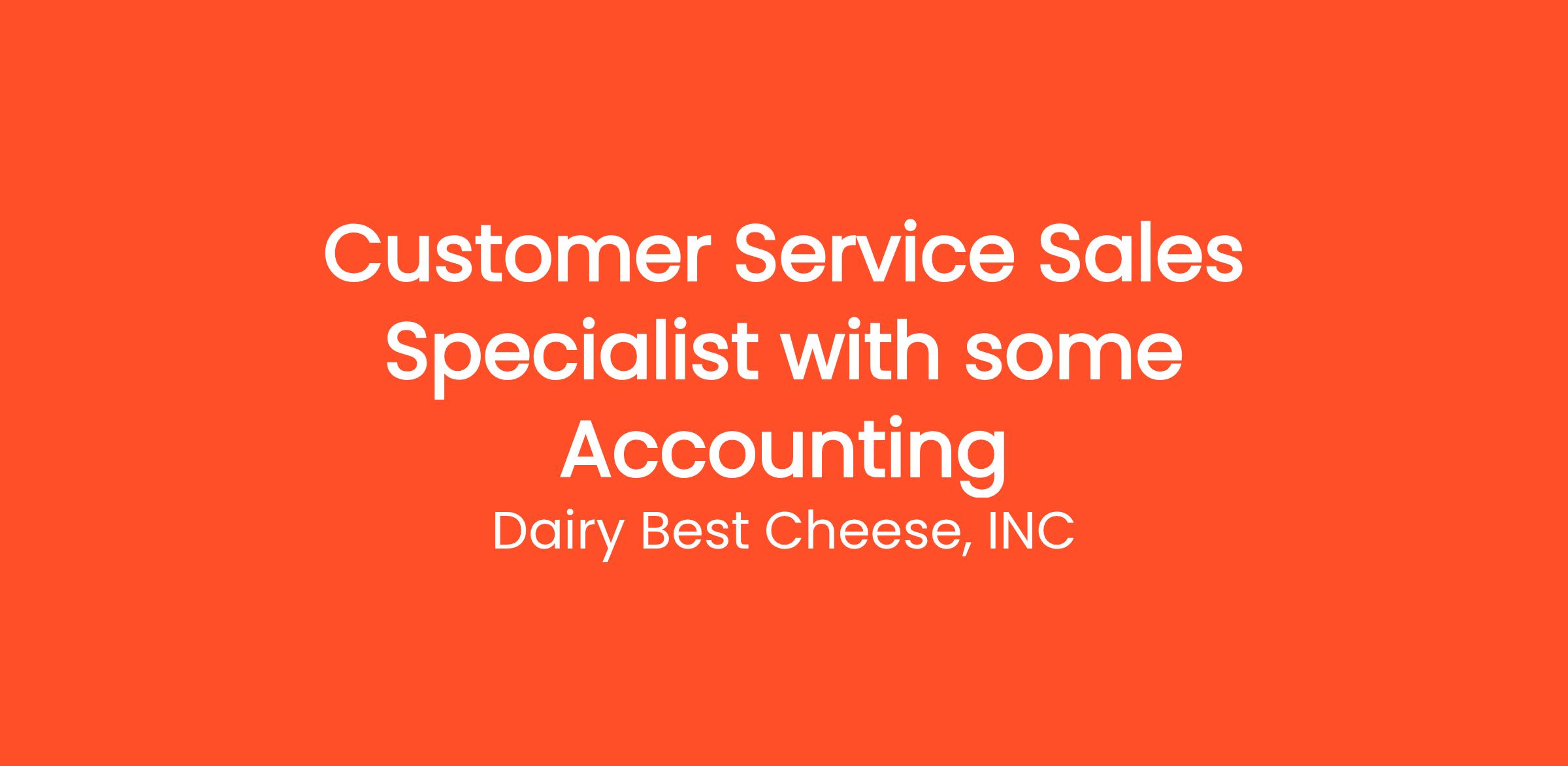 Dairy Best Cheese, a specialty dairy manufacturer, distributor based in WI is looking for an energetic, conscientious and detail oriented team player(s). Our ideal candidate enjoys making a difference and the extra steps to take pride in their career. At Dairy Best Cheese we are energetic and passionate about what we do and we are seeking a qualified candidate who will share our vision, values and commitment to exceed our superior customer service.