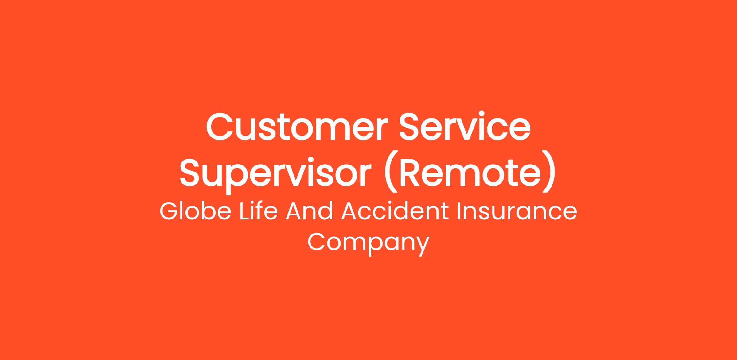 Could you be our next Customer Service Supervisor? Globe Life is looking for a Customer Service Supervisor to join the team!