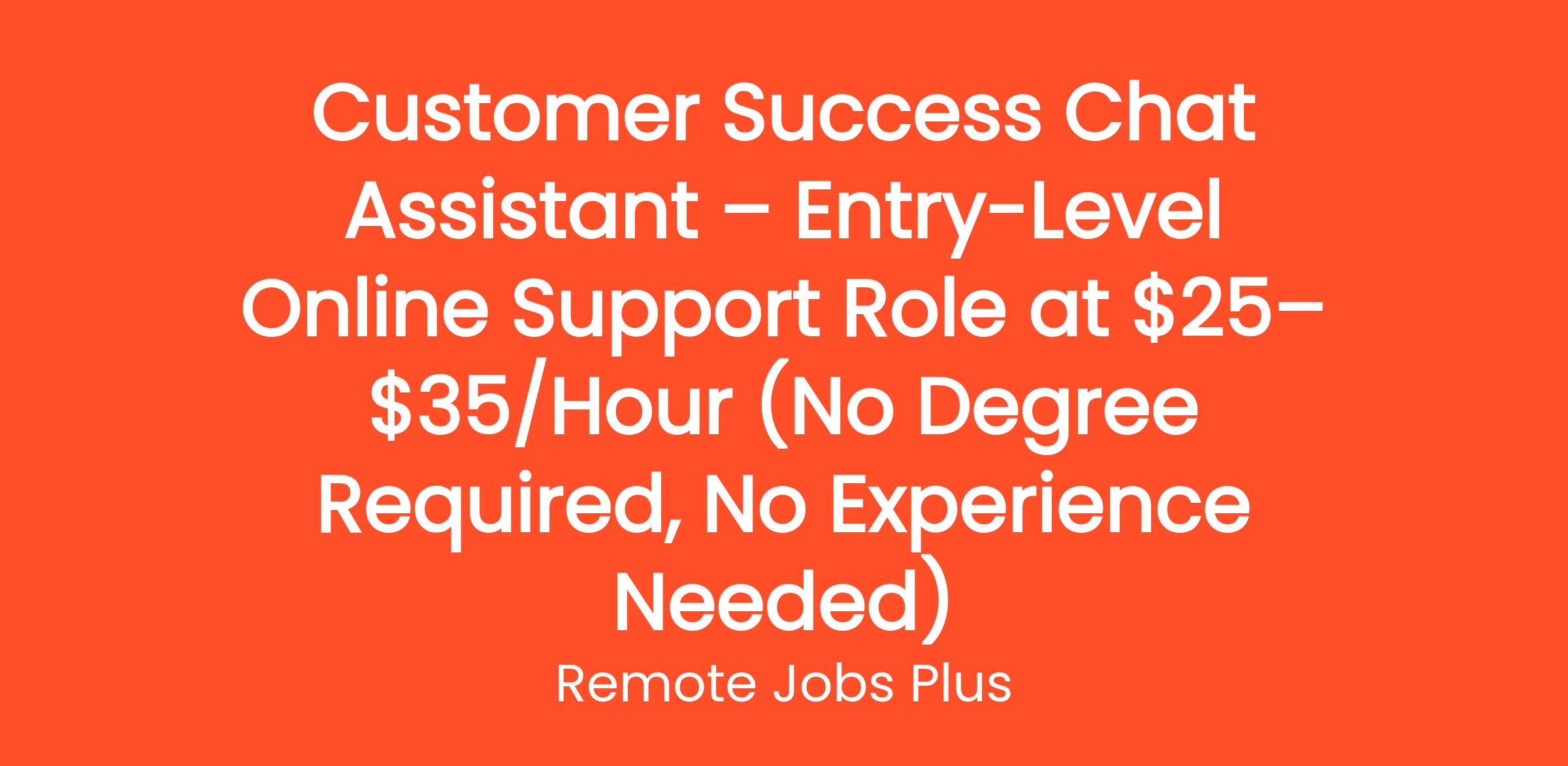 Customer Success Chat Assistant – Entry-Level Online Support Role at $25–$35/Hour (No Degree Required, No Experience Needed)