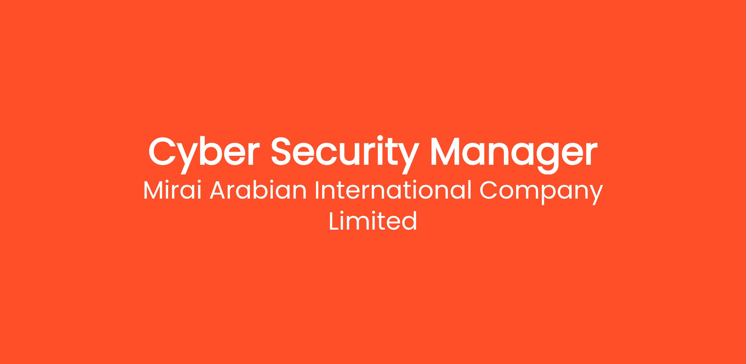 We are seeking a passionate Cyber Security Manager in Mirai’s new office in Riyadh, Saudi Arabia.