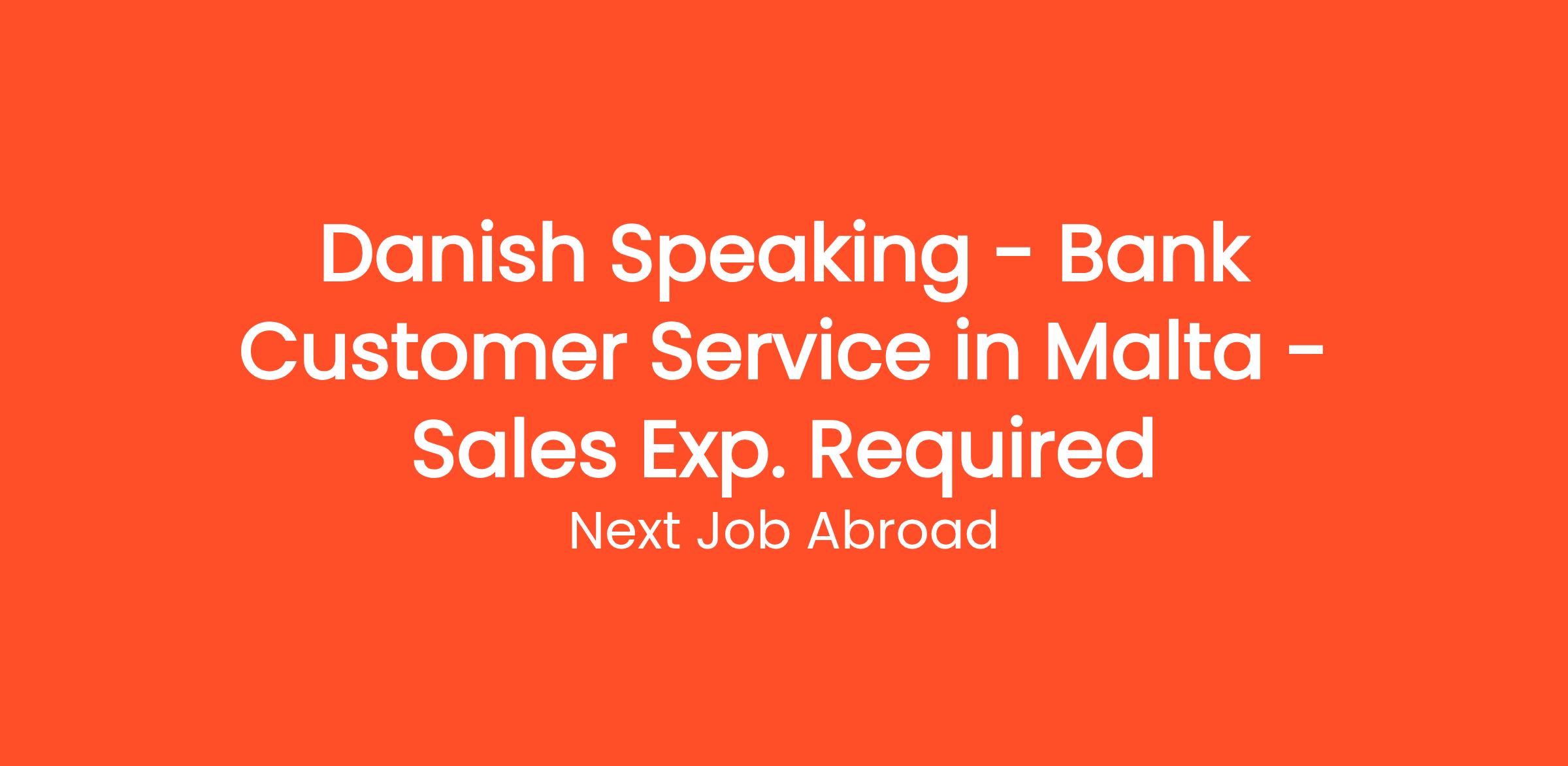 Next Job Abroad is thrilled to offer an exciting opportunity for a Danish Speaking Bank Customer Service Representative in beautiful Malta! If you possess strong sales skills and a passion for exceptional customer service, this role might be perfect for you. You'll be the key point of contact for our clients, assisting them with banking inquiries and promoting our diverse financial products. This position not only allows for professional development but also provides a chance to enjoy the vibrant Maltese culture and stunning landscapes.