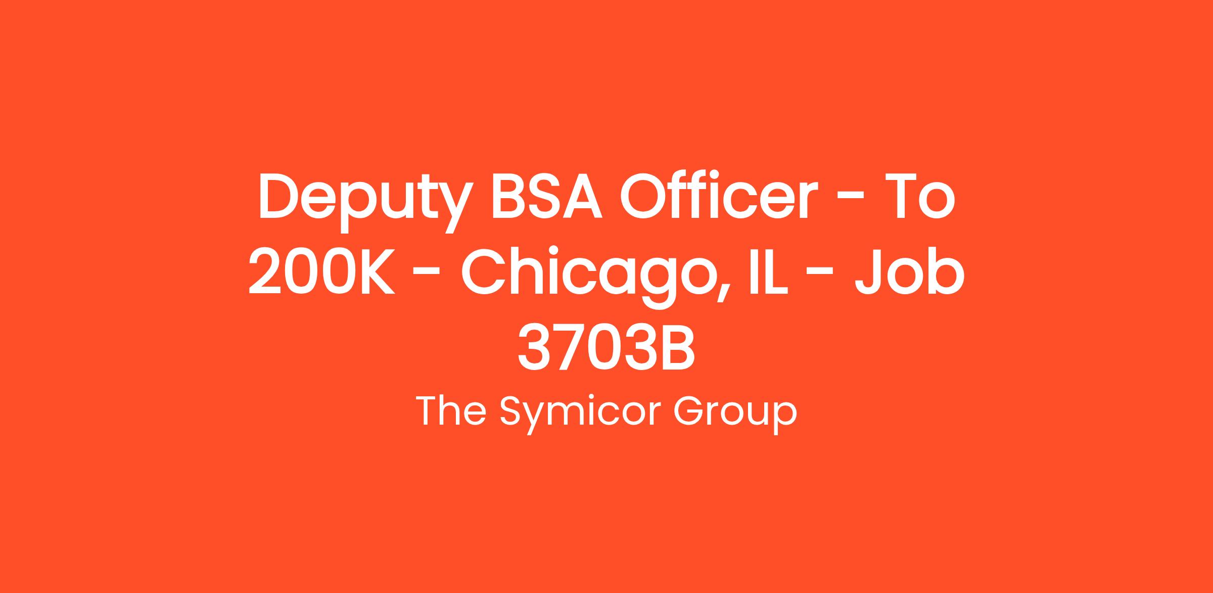 Deputy BSA Officer – To $200K – Chicago, IL – Job # 3703B