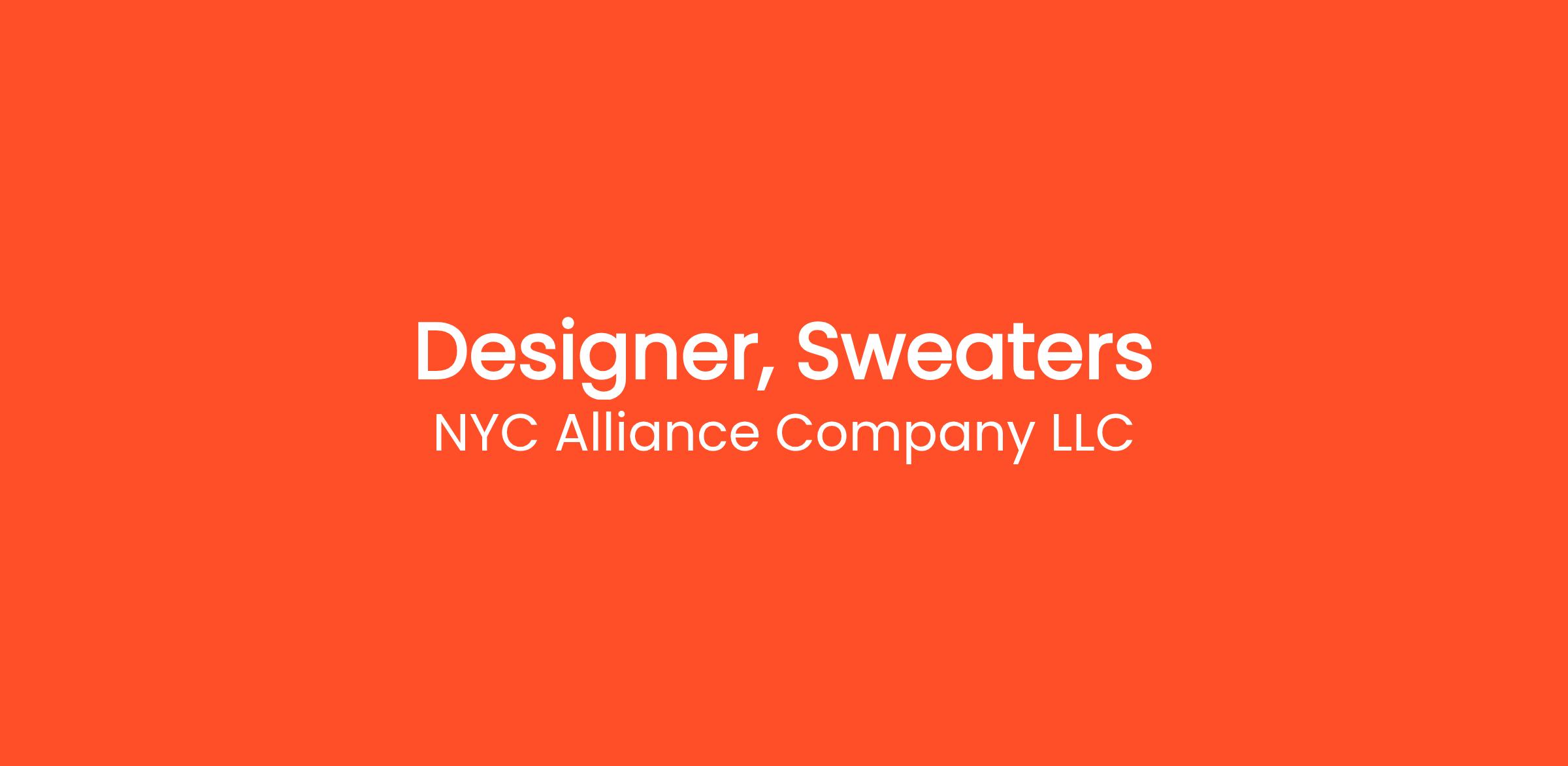 NYC Alliance Company LLC is excited to announce an opening for a Designer specializing in Sweaters for our 525 America brand. In this role, you will be responsible for designing contemporary and stylish sweaters that align with the brand's vision and meet customer demands.