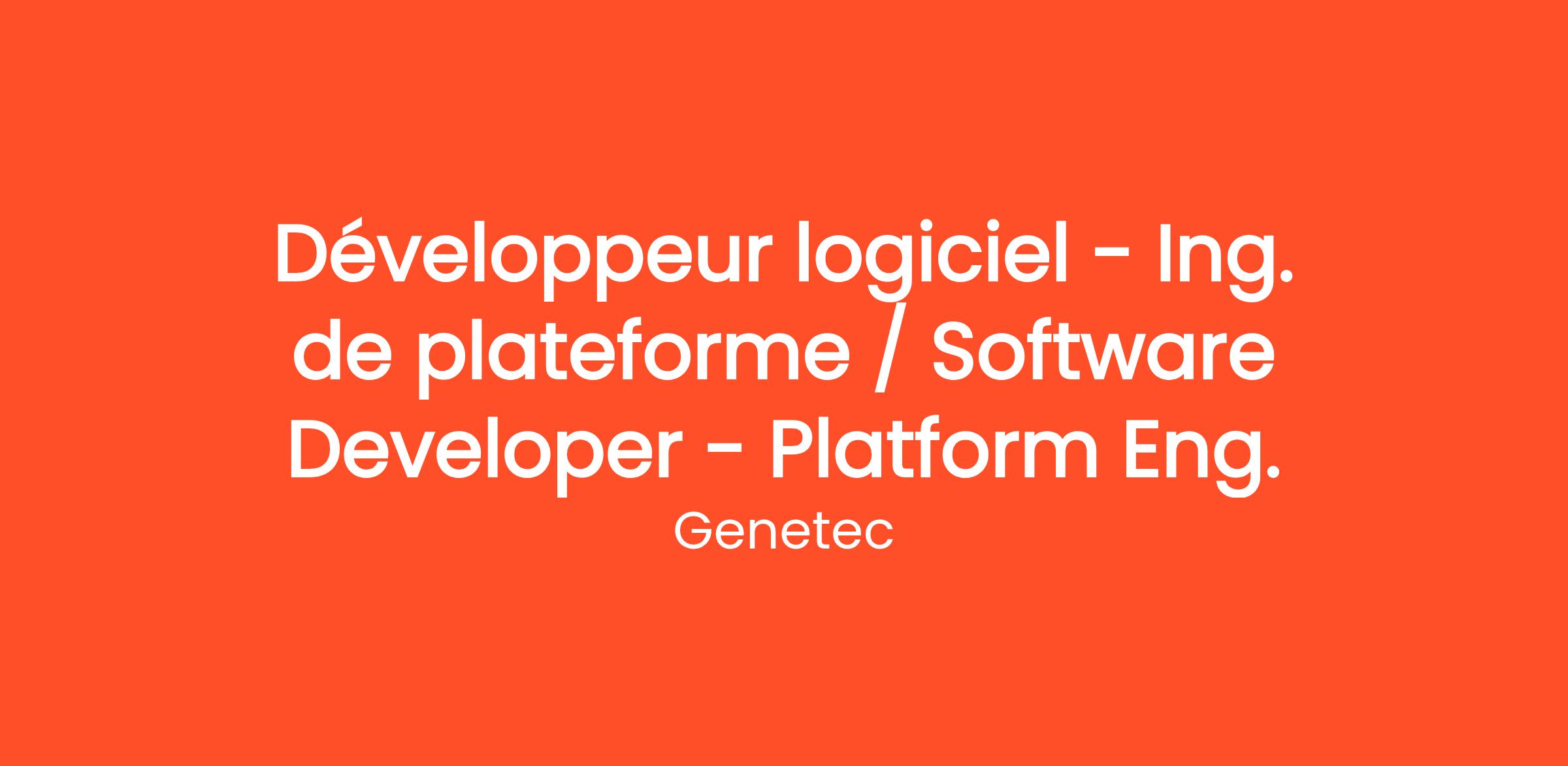 The Platform Engineering team owns the core capabilities that enable Genetec product teams to build, deliver and operate software anywhere, from the cloud to customer environments.