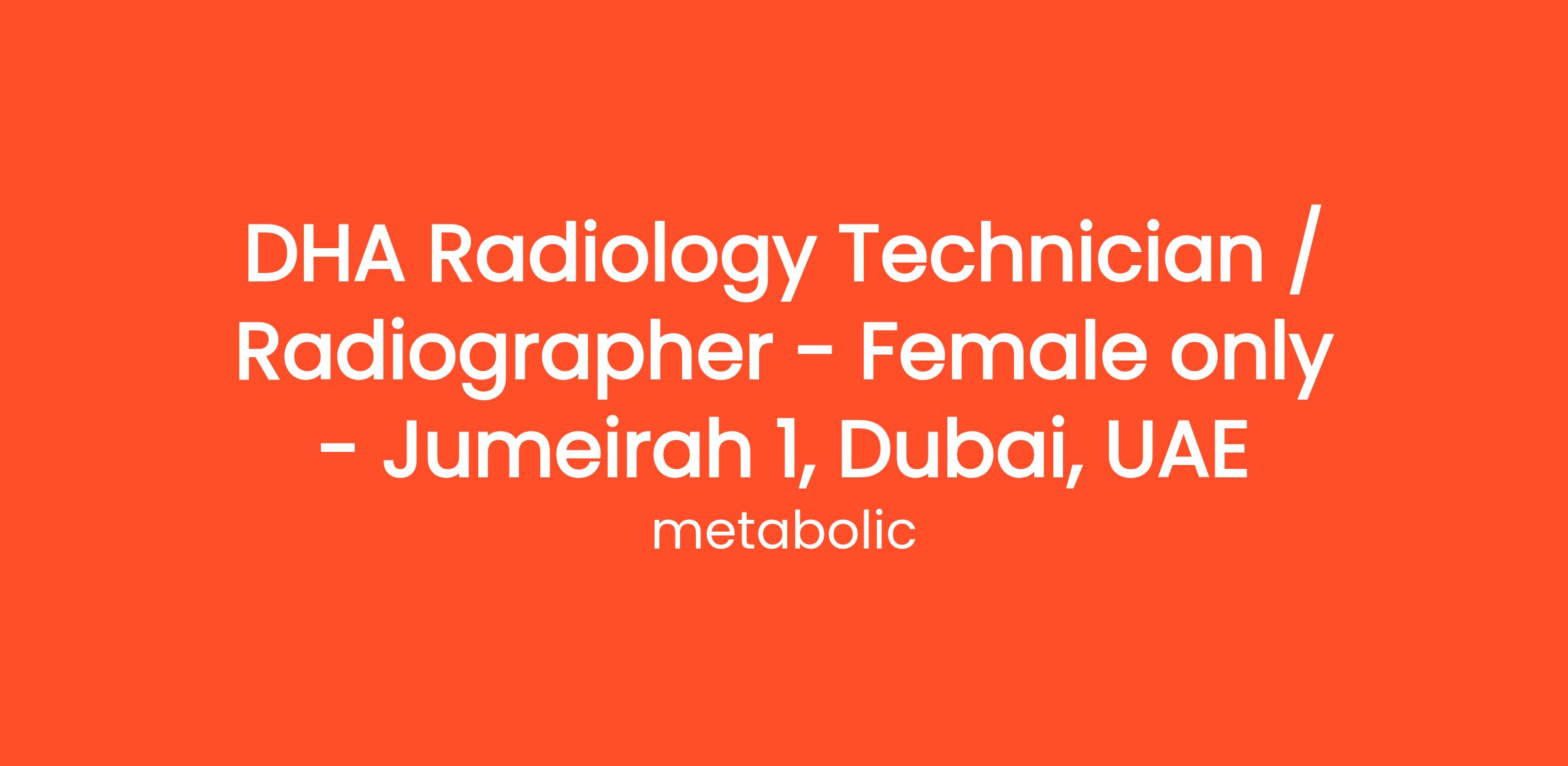 - Valid DHA license as Radiology Technician / Radiographer