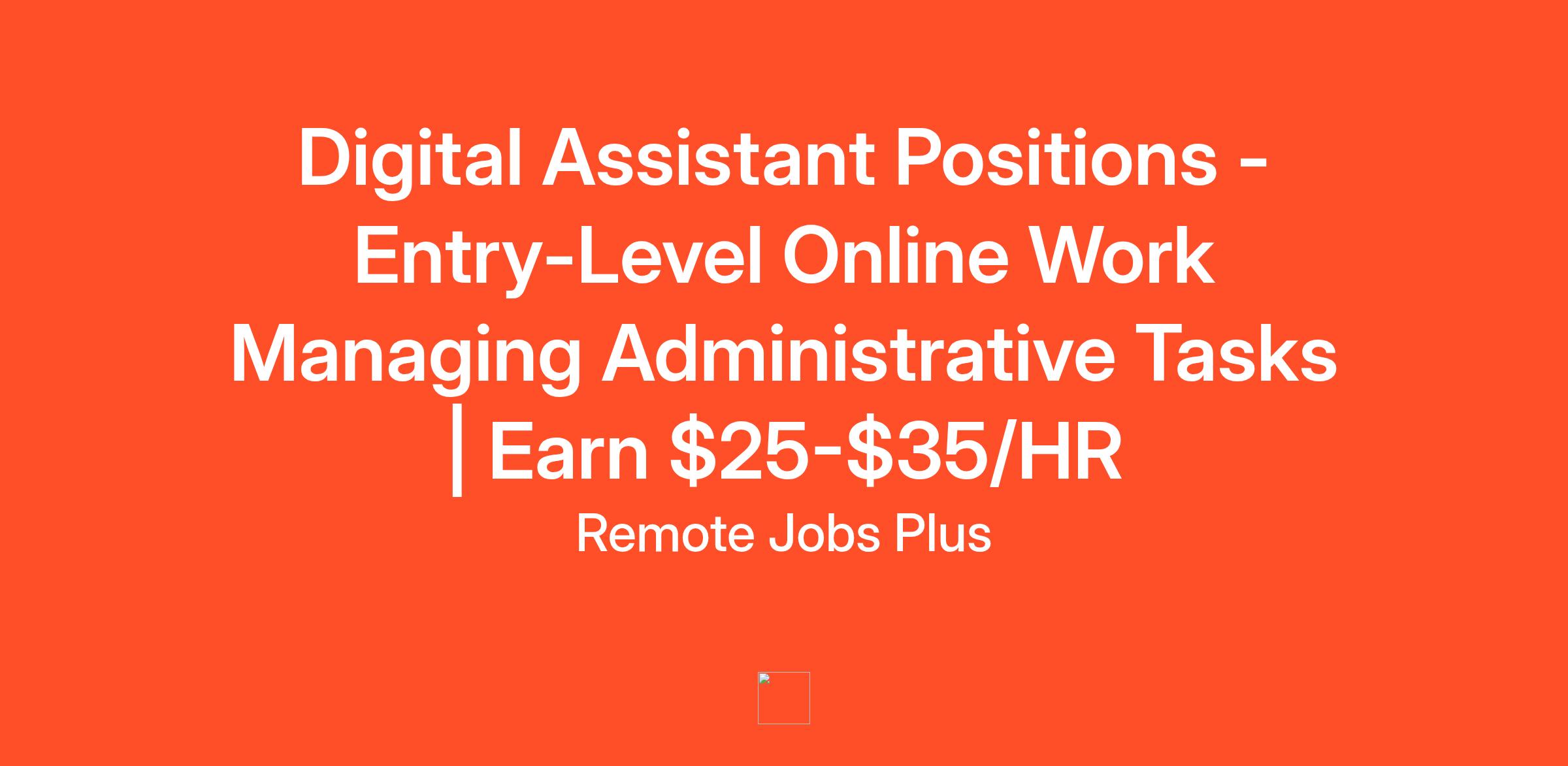 Digital Assistant Positions - Entry-Level Online Work Managing Administrative Tasks | Earn $25-$35/HR