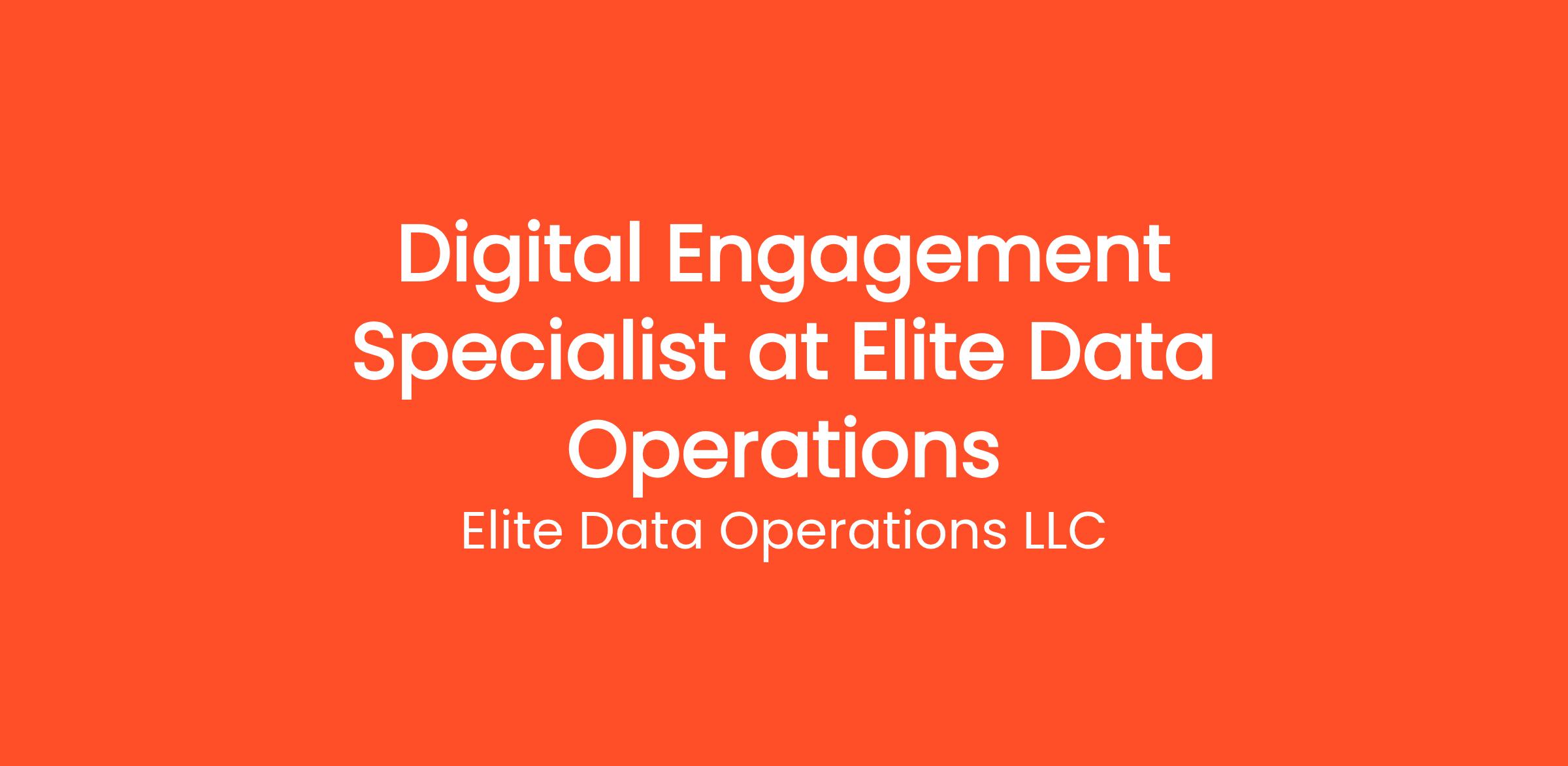 Are you highly organized and looking for the perfect entry-level opportunity? Elite Data Operations LLC is currently seeking a Digital Engagement Specialist (Entry Level - Remote) to join our rapidly growing remote team. If you've been searching for remote jobs no degree or remote jobs hiring, this is the exact role you've been looking for. No degree required and no prior experience is necessary—we provide comprehensive training to all new hires! You will be responsible for critical daily operations, managing secure platforms, and contributing to our vibrant digital culture.