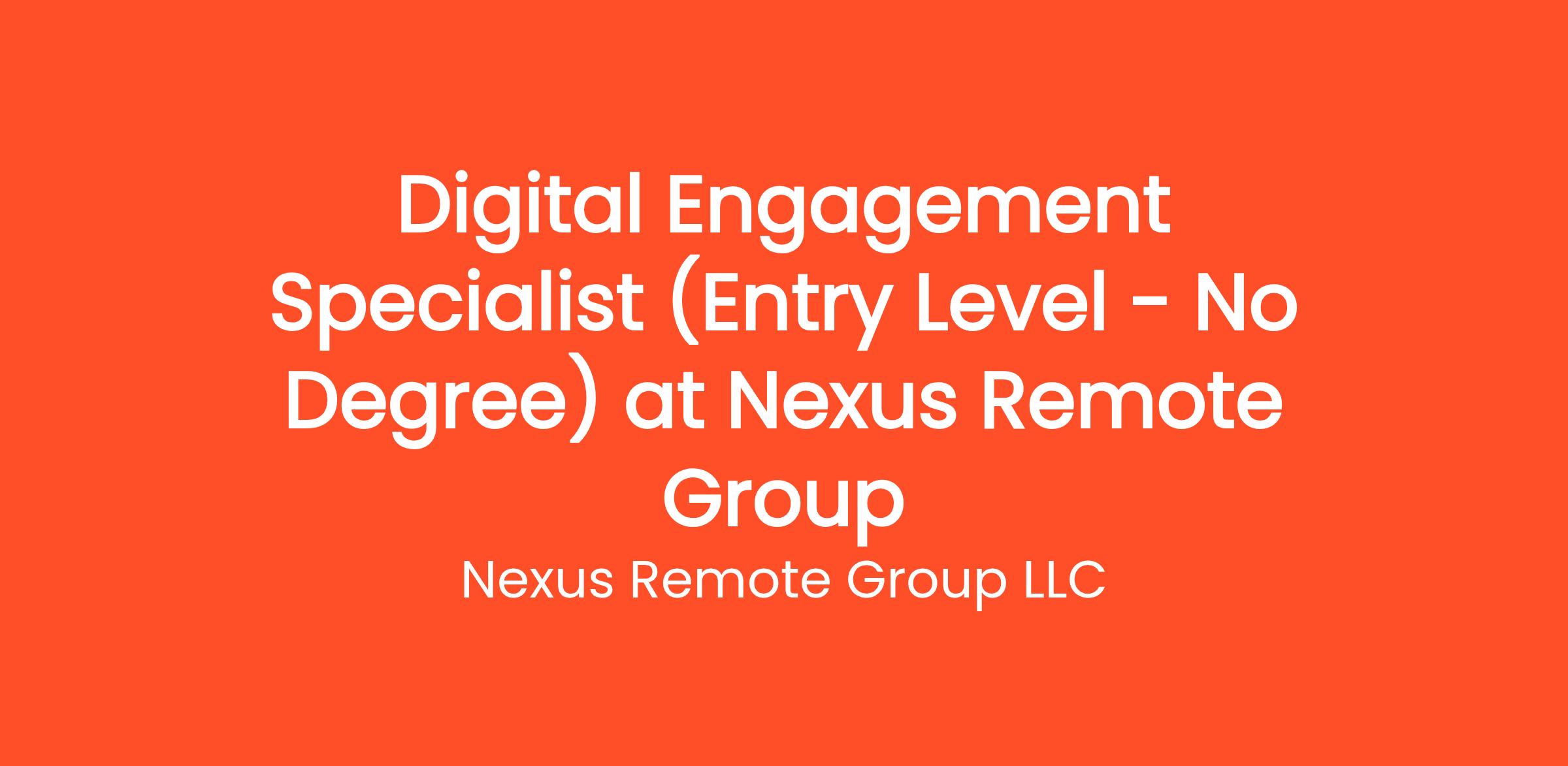 Are you highly organized and looking for the perfect entry-level opportunity? Nexus Remote Group LLC is currently seeking a Digital Engagement Specialist (Entry Level - No Degree) to join our rapidly growing remote team. If you've been searching for remote jobs no degree or overnight remote jobs, this is the exact role you've been looking for. No degree required and no prior experience is necessary—we provide comprehensive training to all new hires! You will be responsible for critical daily operations, managing secure platforms, and contributing to our vibrant digital culture.