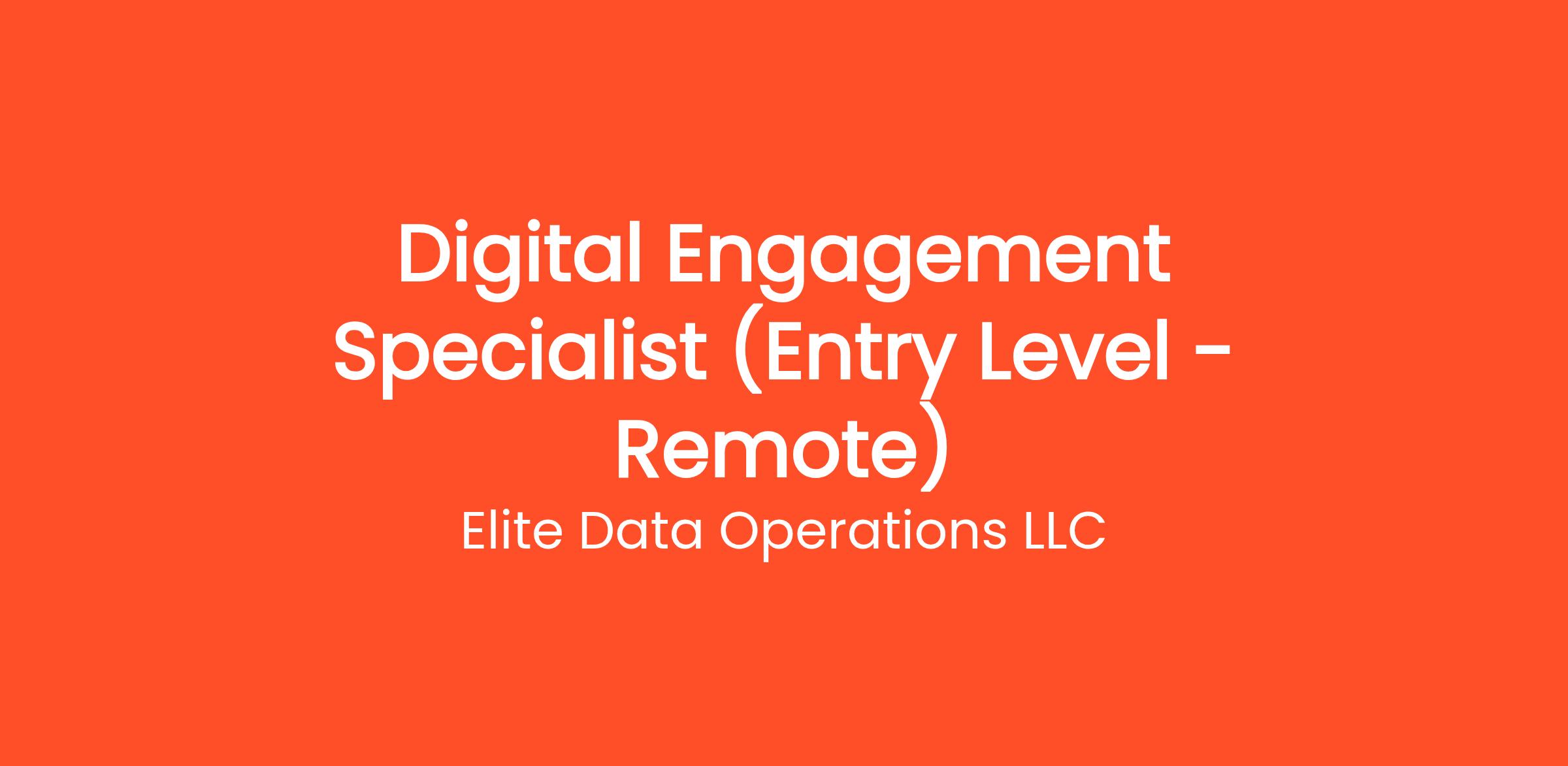 Are you highly organized and looking for the perfect entry-level opportunity? Elite Data Operations LLC is currently seeking a Digital Engagement Specialist (Entry Level - Remote) to join our rapidly growing remote team. If you've been searching for remote jobs no degree or remote jobs hiring, this is the exact role you've been looking for. No degree required and no prior experience is necessary—we provide comprehensive training to all new hires! You will be responsible for critical daily operations, managing secure platforms, and contributing to our vibrant digital culture.