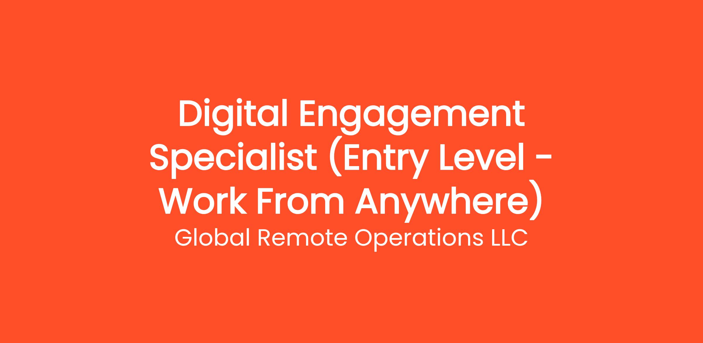 Are you highly organized and looking for the perfect entry-level opportunity? Global Remote Operations LLC is currently seeking a Digital Engagement Specialist (Entry Level - Work From Anywhere) to join our rapidly growing remote team. If you've been searching for remote jobs no degree or overnight remote jobs, this is the exact role you've been looking for. No degree required and no prior experience is necessary—we provide comprehensive training to all new hires! You will be responsible for critical daily operations, managing secure platforms, and contributing to our vibrant digital culture.