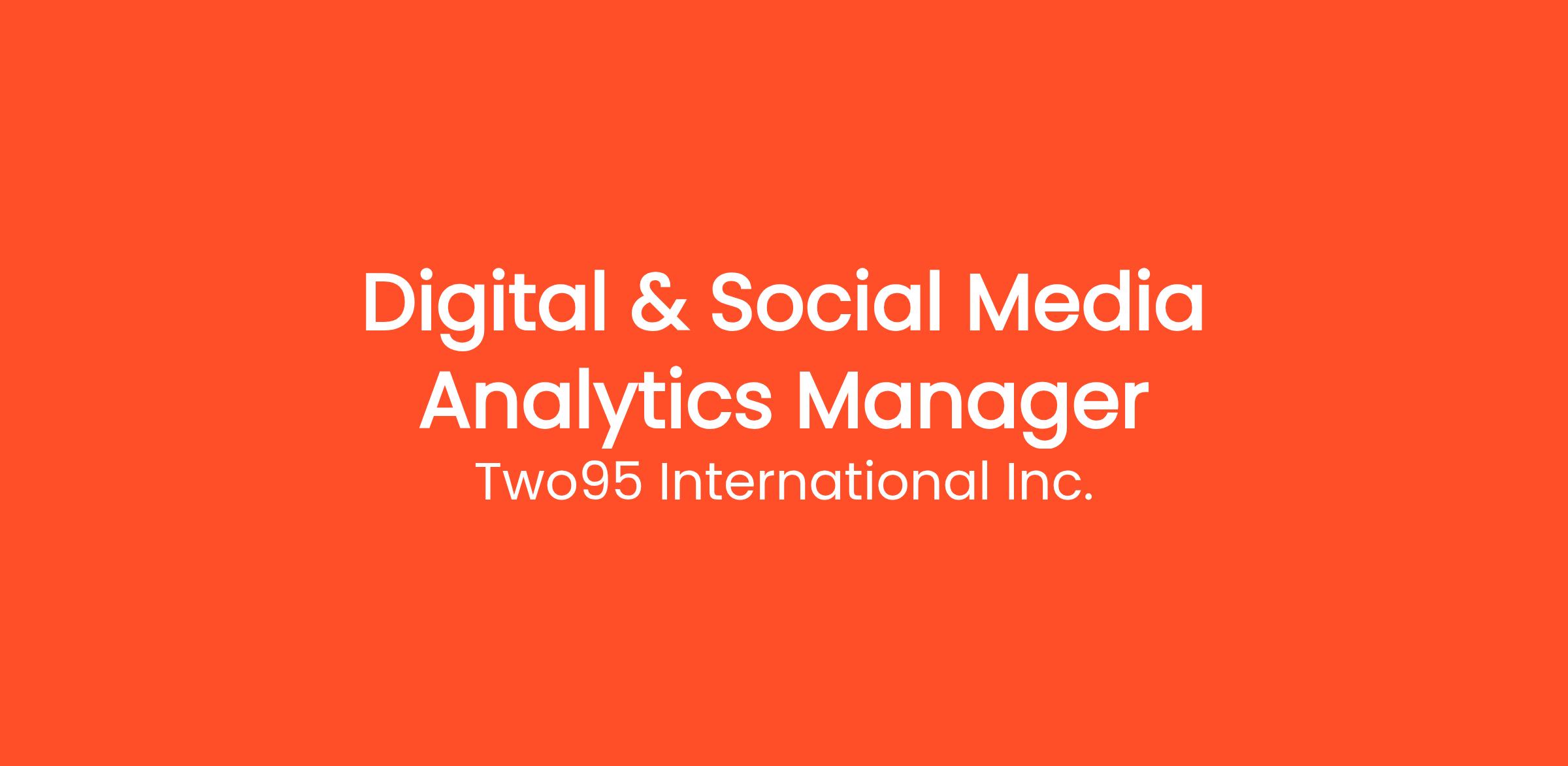 Title: Digital & Social Media Analytics Manager