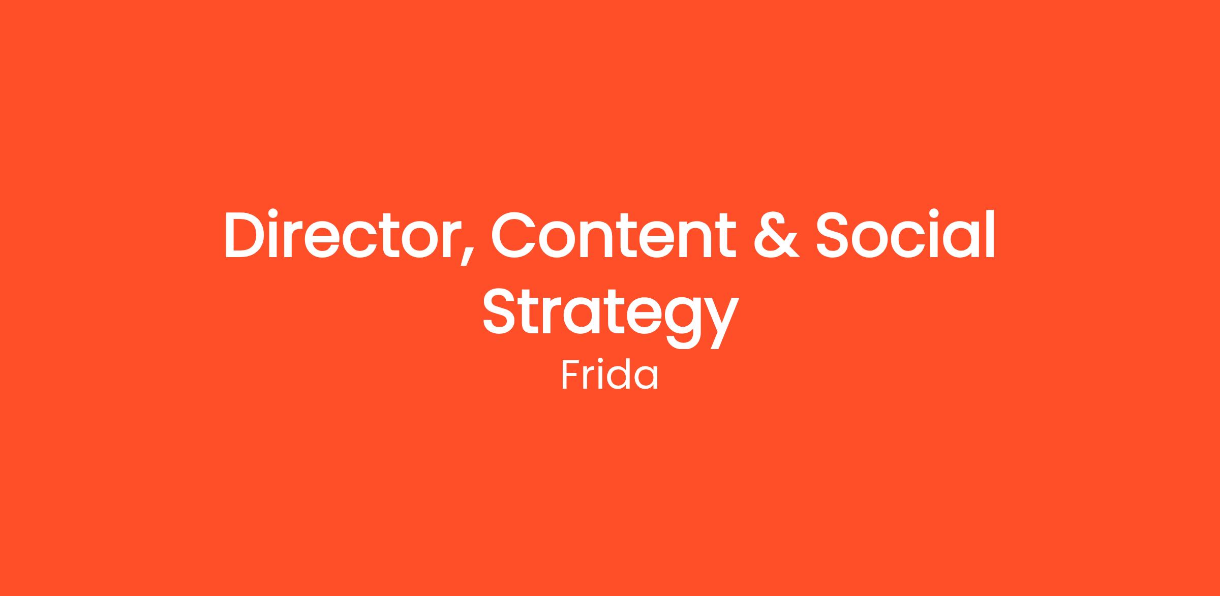 Frida is an organization that values collaboration and community. As the Director, Content & Social Strategy, you will work closely with Creative Marketing, Brand Management and Sales teams.
