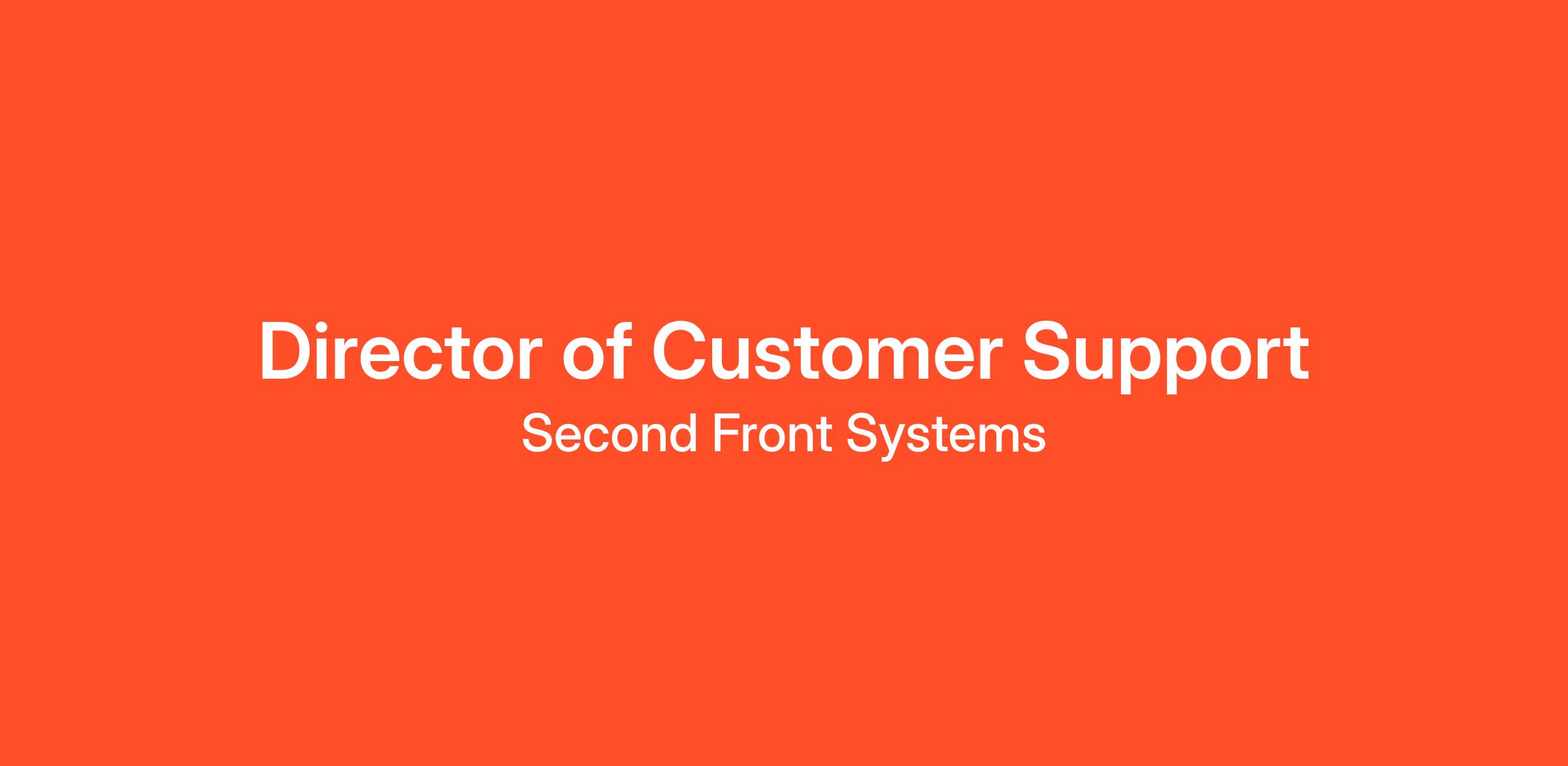 Second Front Systems (2F) is seeking an experienced and mission-driven Director of Customer Support to lead and scale our customer support function in support of U.S. national security missions. As a key leader within the Customer organization, this role will set the strategy, standards, and operating model for how we deliver fast, reliable, and empathetic support to customers operating in high-stakes environments.