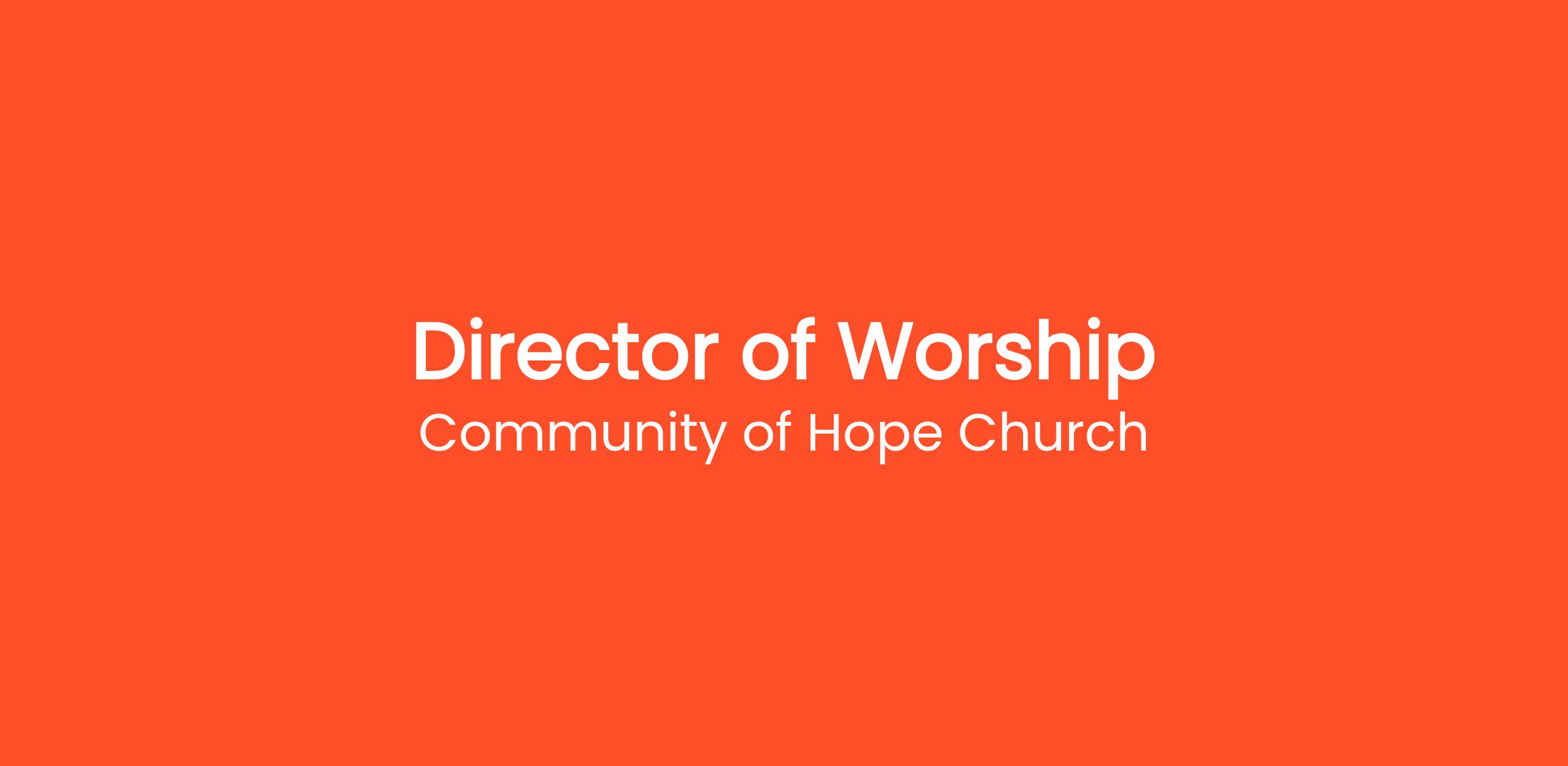 Modeling Biblical Priorities - Responsible for upholding Biblical priorities and core values of Community of Hope. The Worship Leader should represent a growing personal relationship with Christ. The Worship Leader models a strong relationship with his or her spouse (if married) and children (if applicable). The WL strives to fulfill his or her purpose in life and ministry while demonstrating integrity in words, relationships, and actions. These objectives are accomplished by: