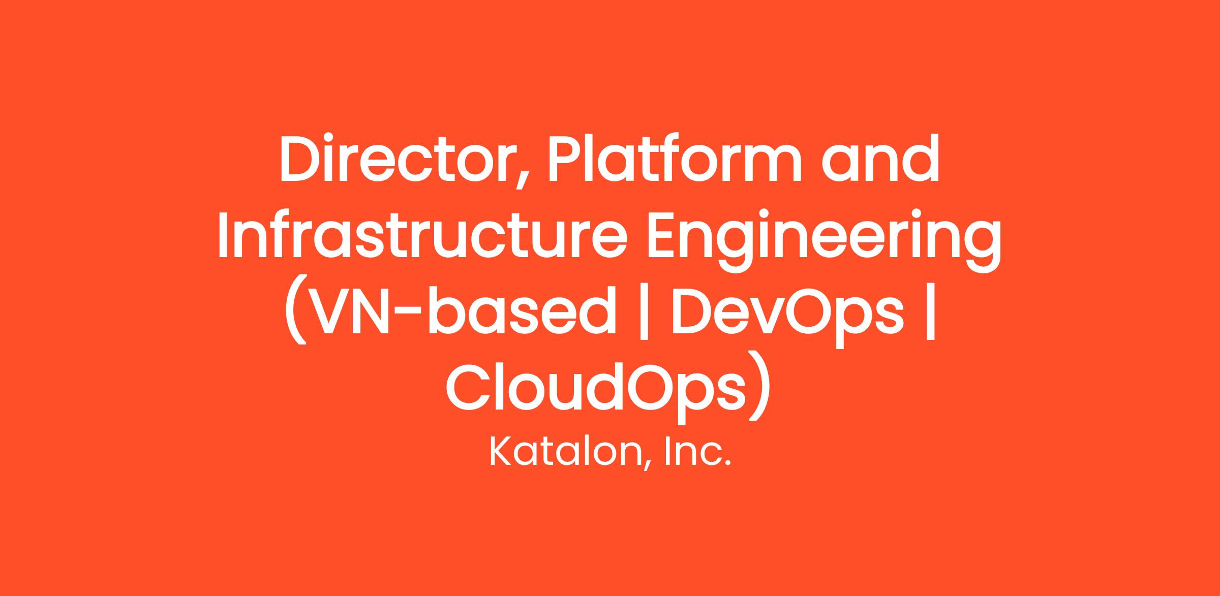 The Director, Platform and Infrastructure Engineering is a critical leadership role responsible for the speed, stability, and security of Katalon’s cloud-based platform. You will partner with Engineering, Product, and Security to define a CloudOps strategy that accelerates innovation and ensures continuous, high-performing product delivery to our global user bases.