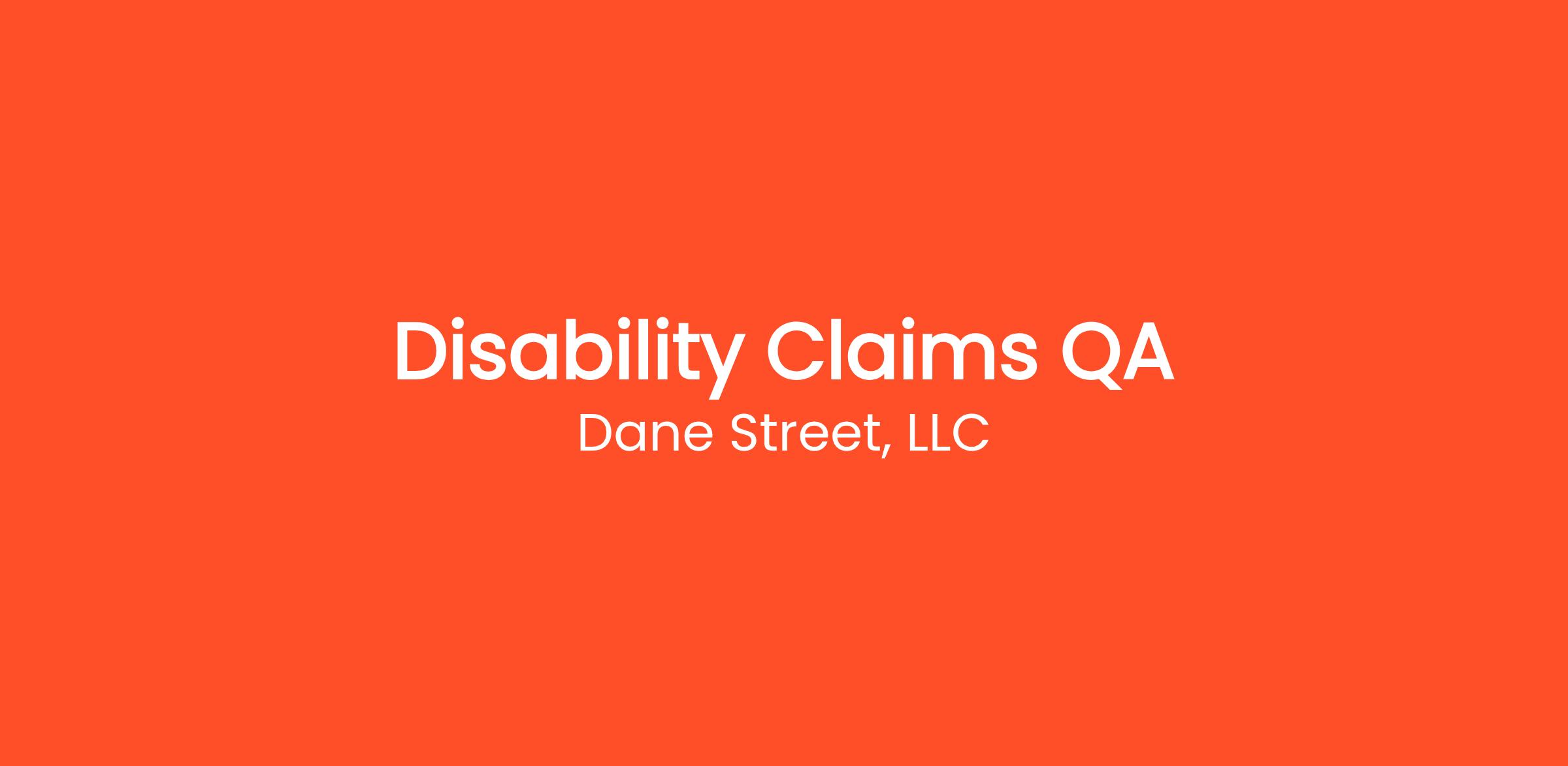Dane Street is seeking highly motivated candidates to join our team as a Disability Claims QA, specializing in Long Term Disability (LTD). We offer an exciting work environment, competitive compensation, and strong growth potential.