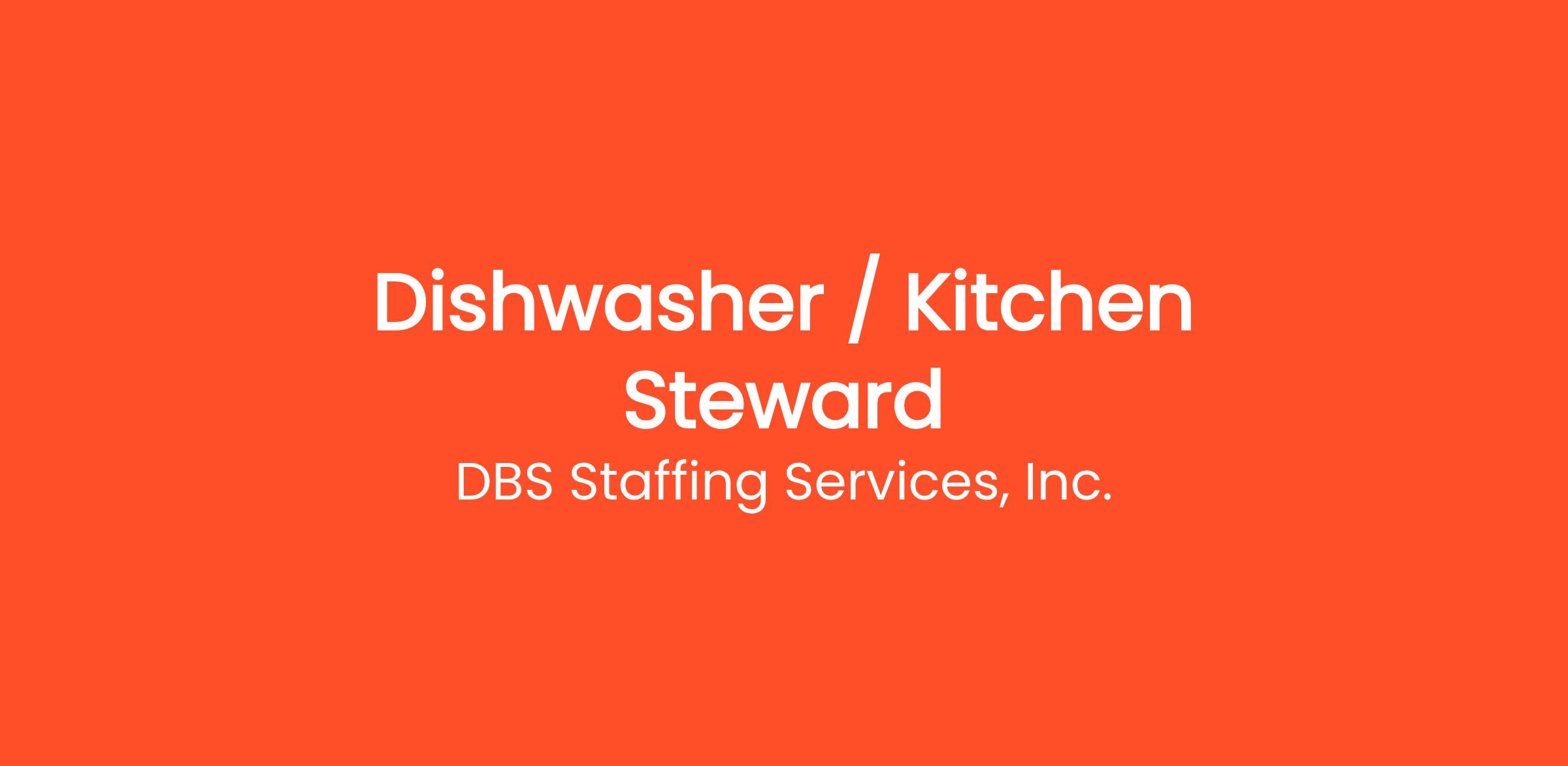 - Previous experience in a kitchen setting as a dishwasher or kitchen steward is a plus.