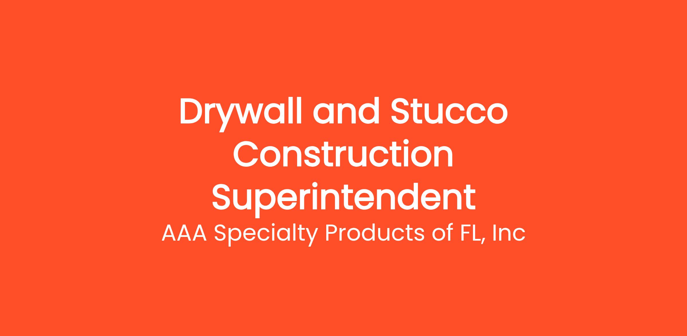 We are a busy Fort Myers based Metal Frame, Drywall and Stucco company looking to add experienced Full Time Working, Hands-on Superintendent / Foreman to our team. We are looking for home run hires so experience as a superintendent is required. Experience with Metal Frame, Drywall and/or Stucco is highly preferred. Compensation is dependent on experience and can be discussed at interview. Multiple openings available